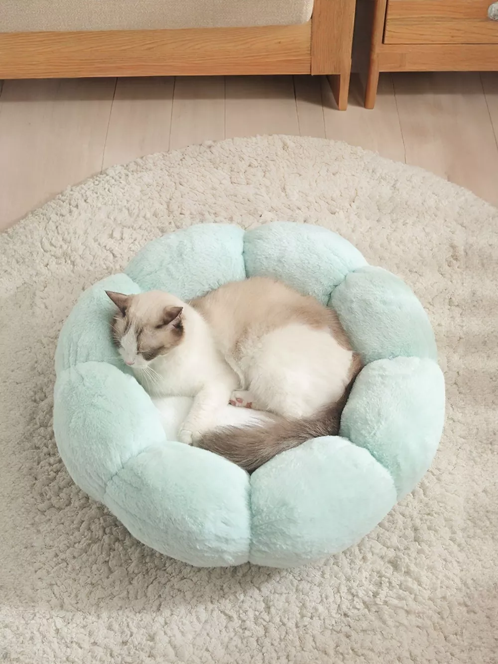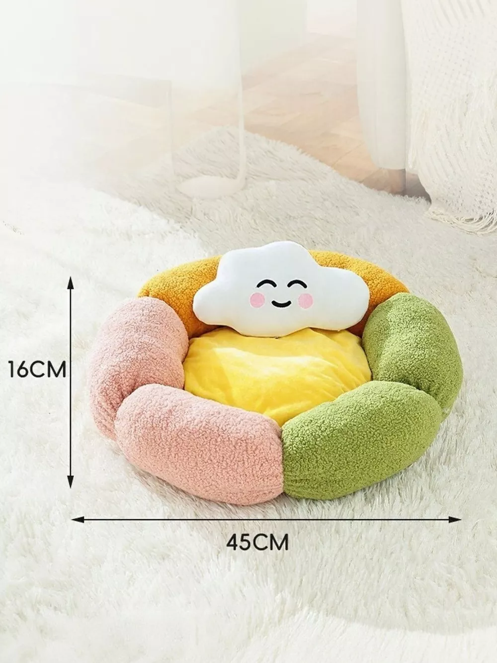 Round Plush Pet Nest with Cloud Pillow