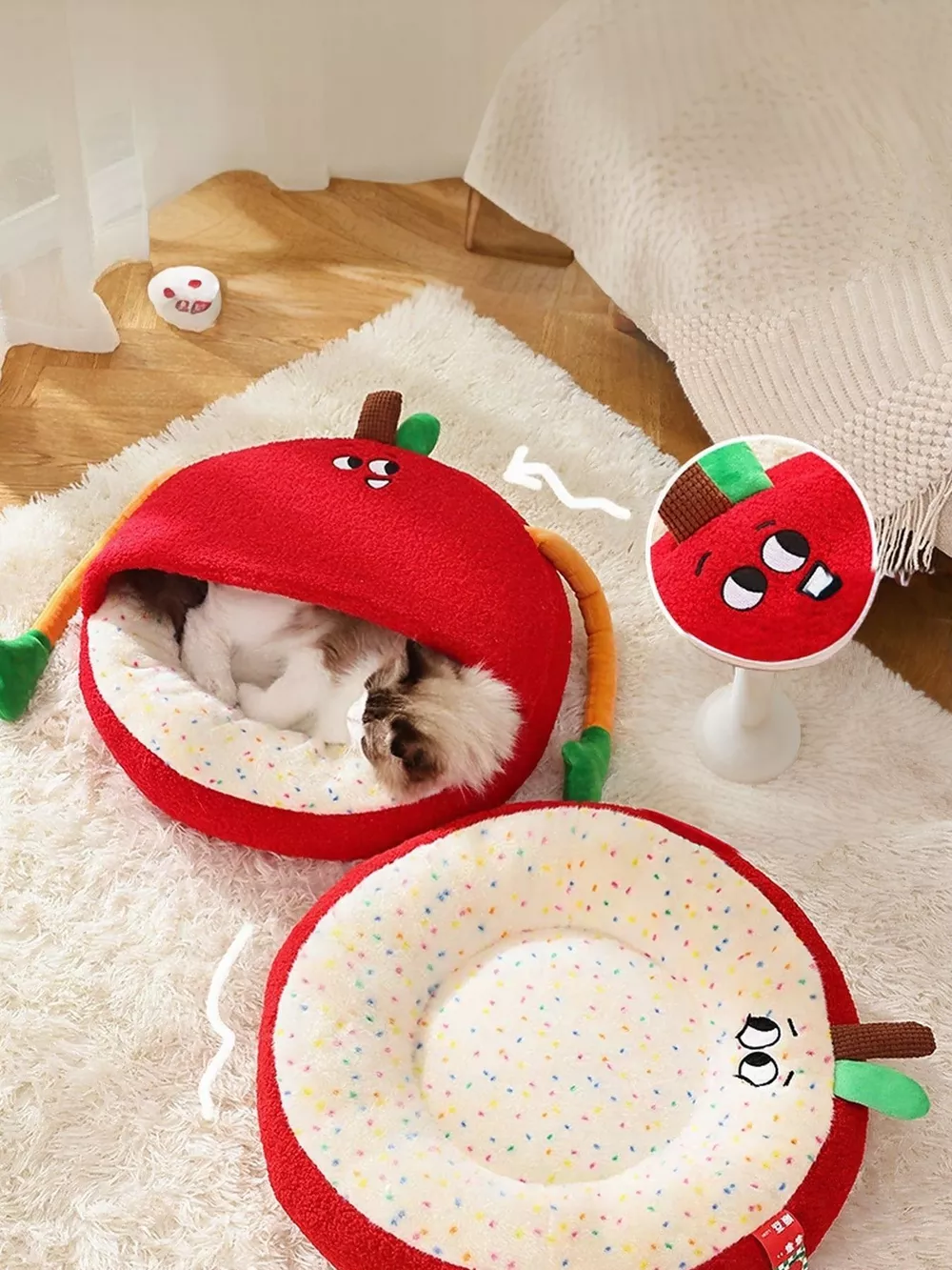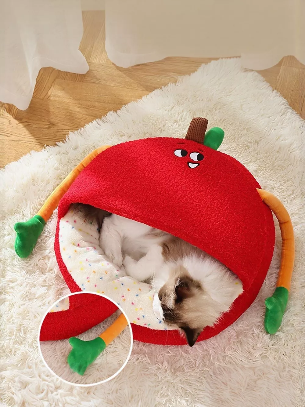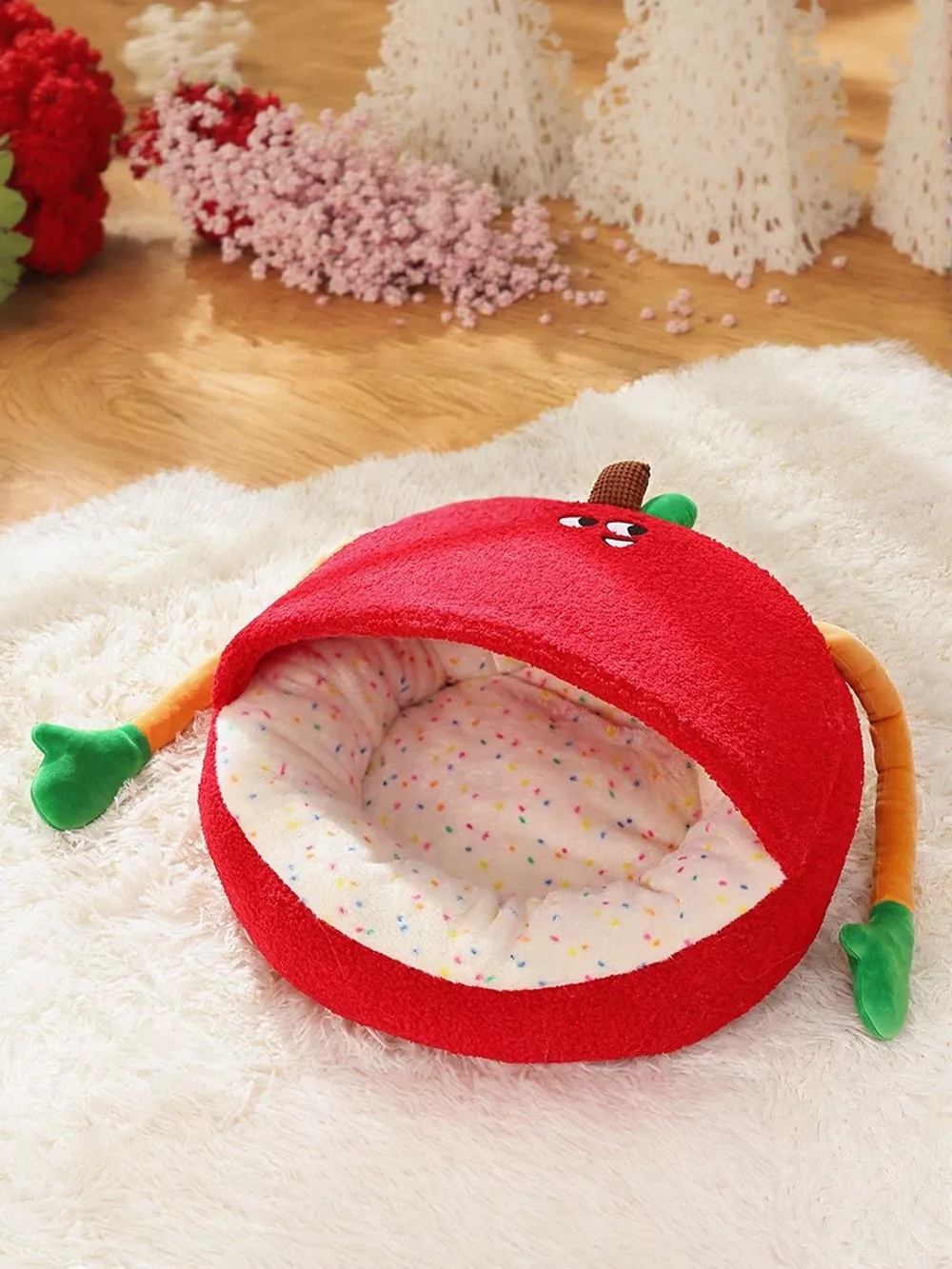 Cartoon Apple Shape Pet Nest with Plush Arms