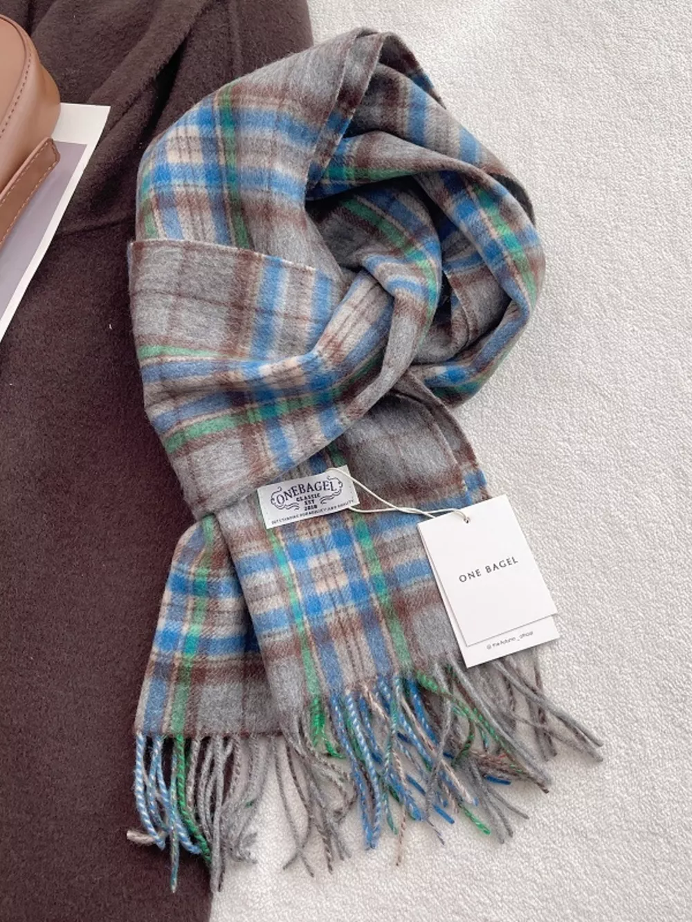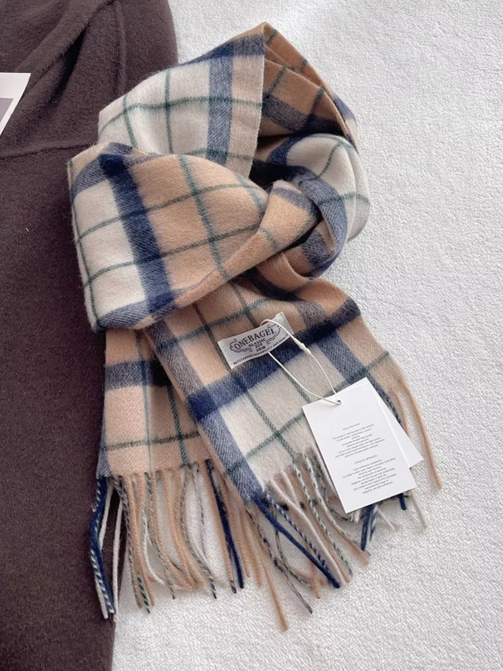 100% Wool Plaid Fringe Scarf