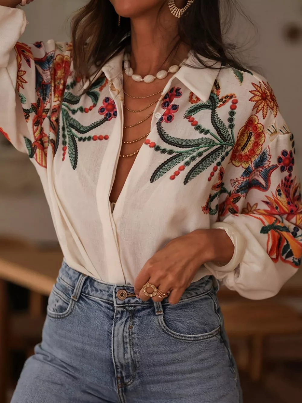 Floral Button Up Long Sleeve Shirt