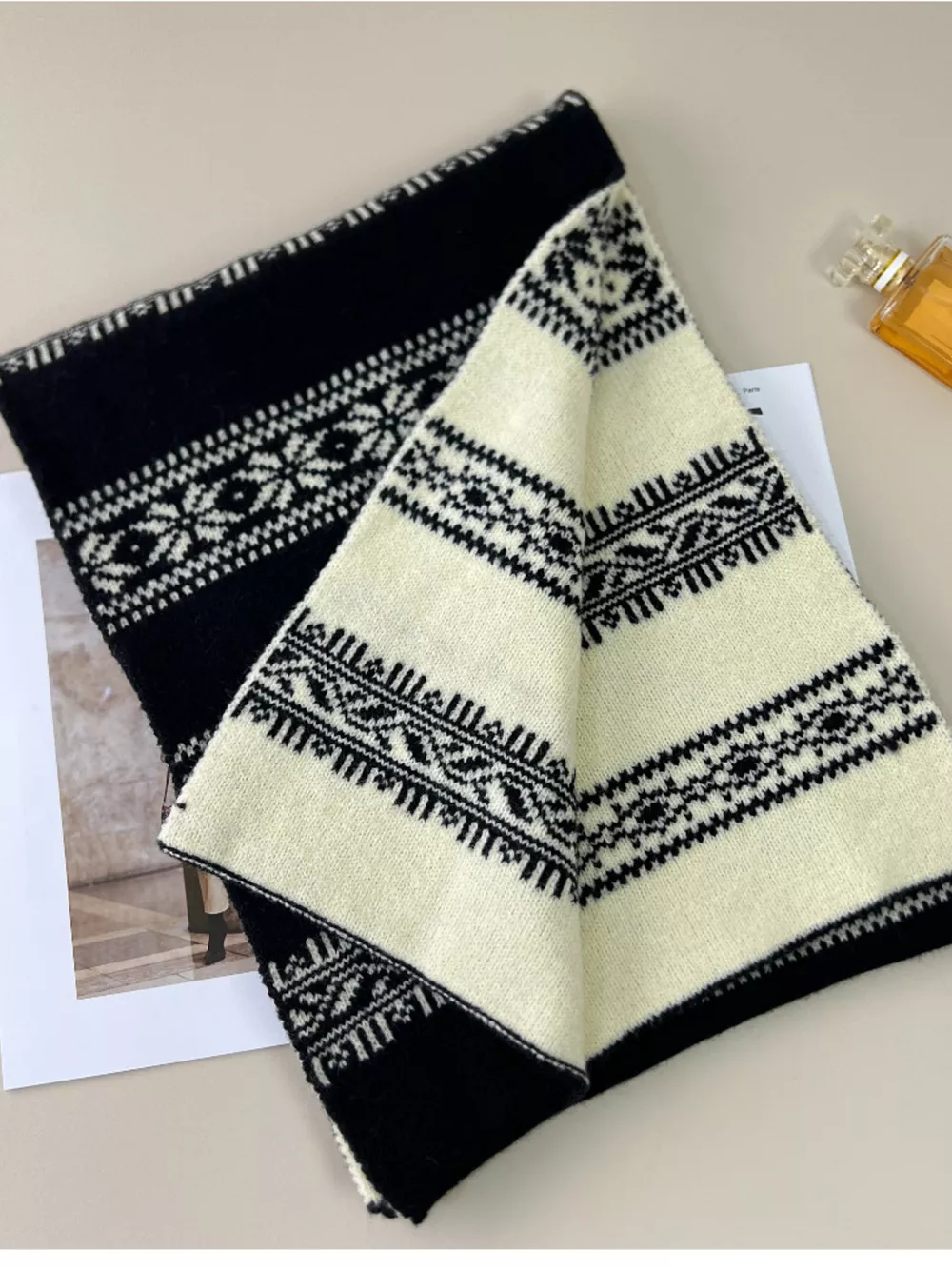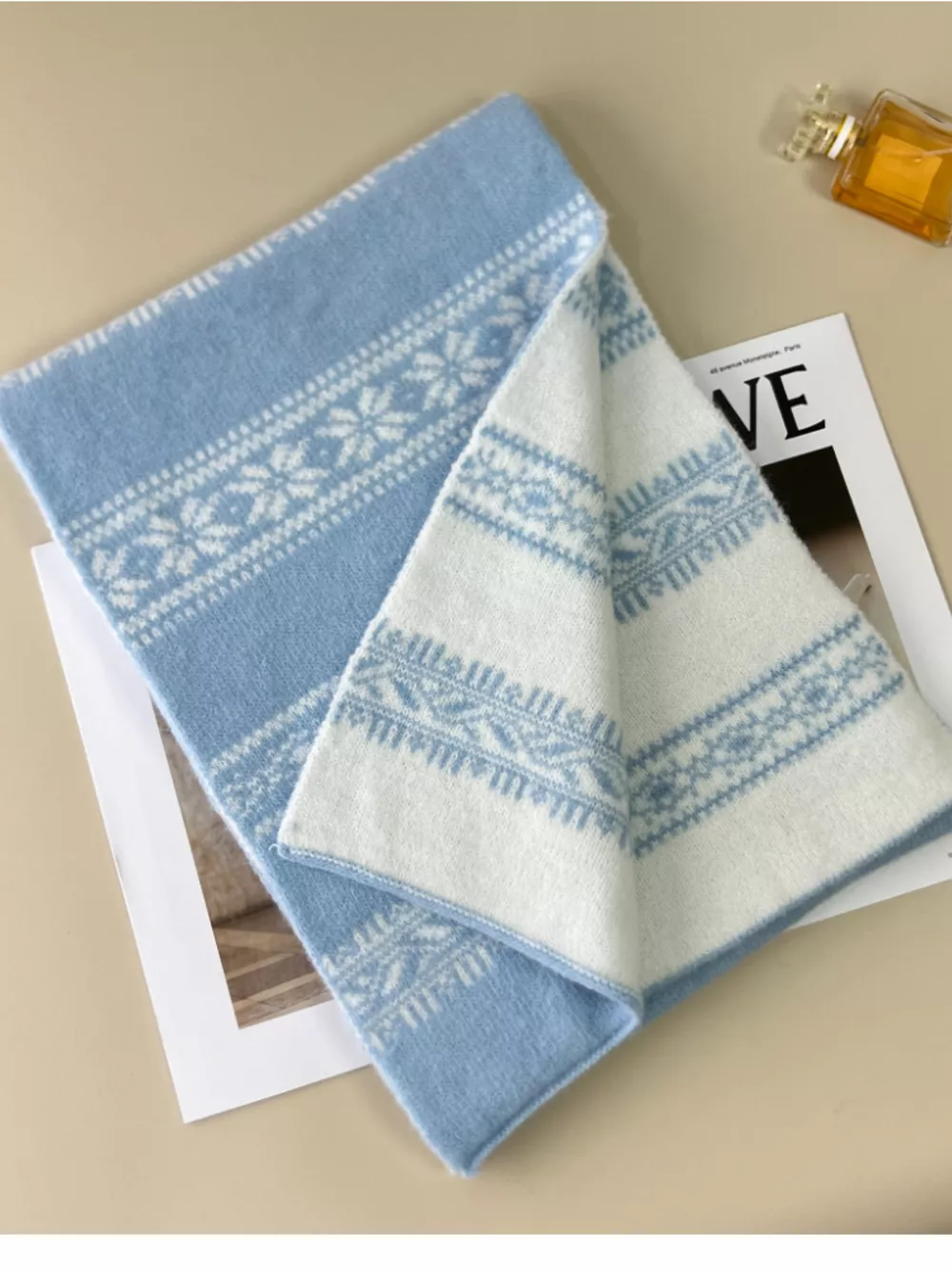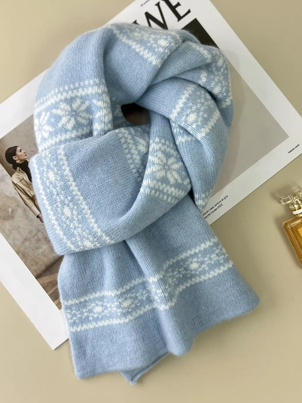 Winter Snowflake Pattern Knitted Scarf