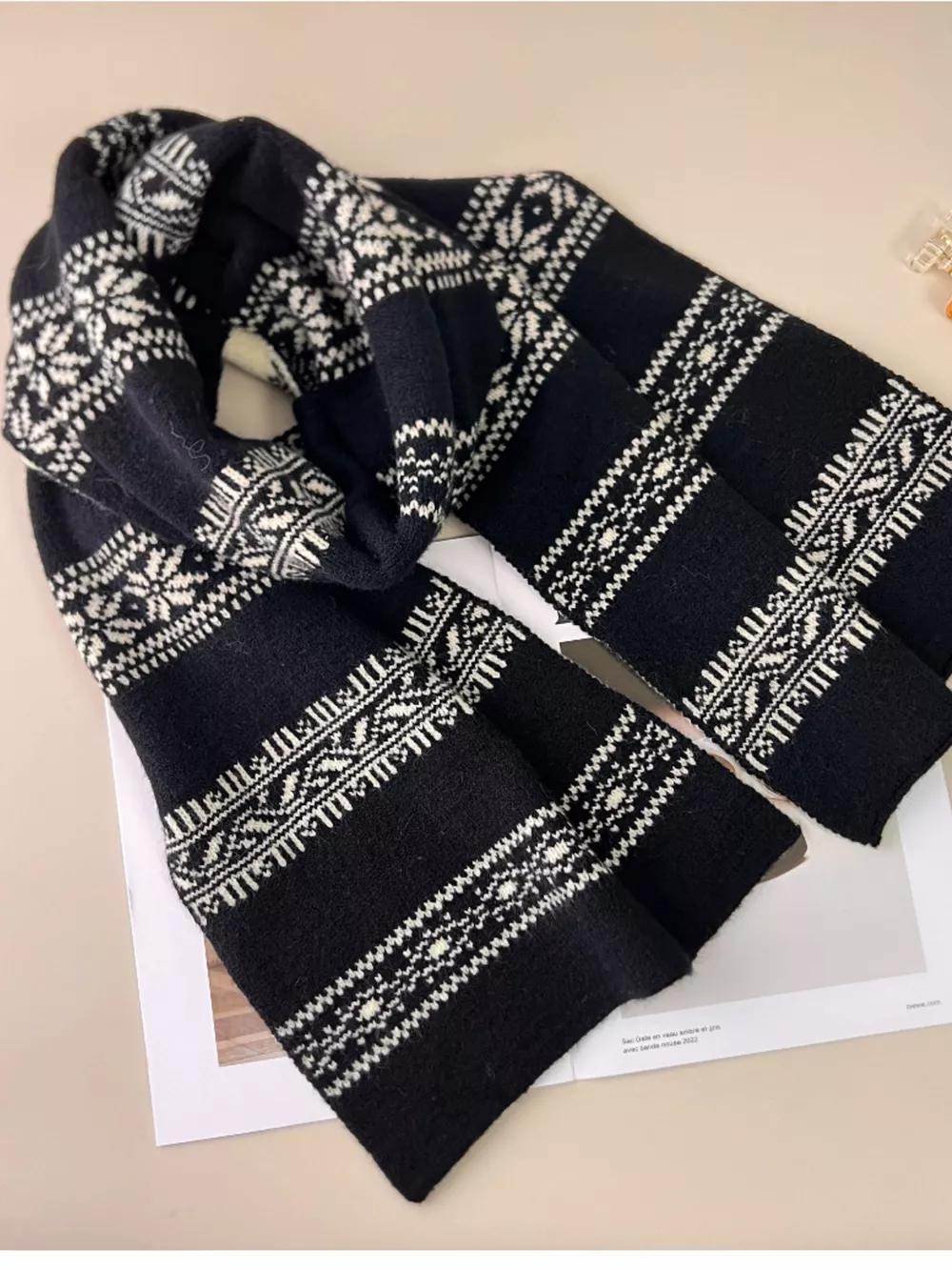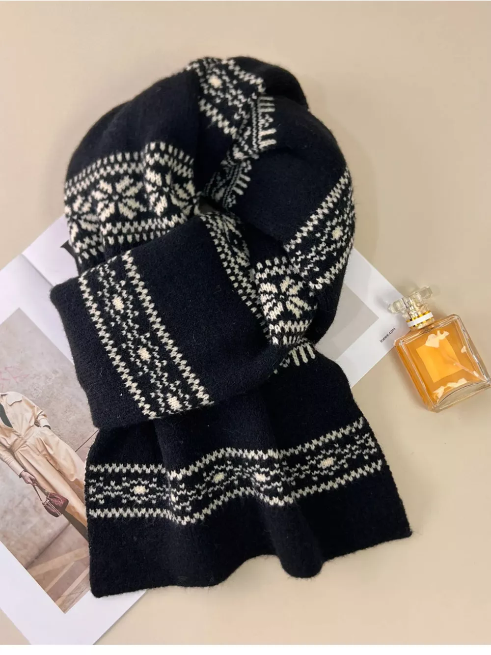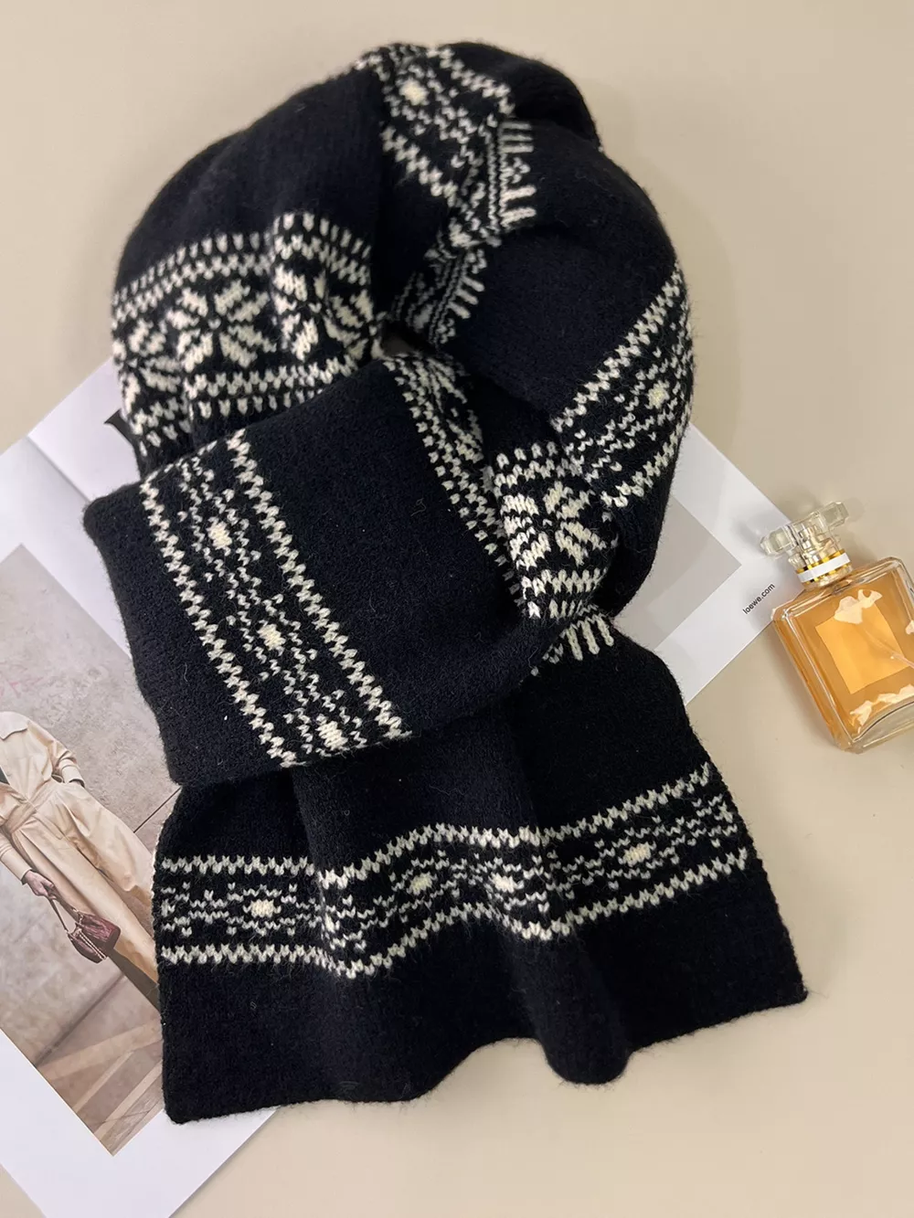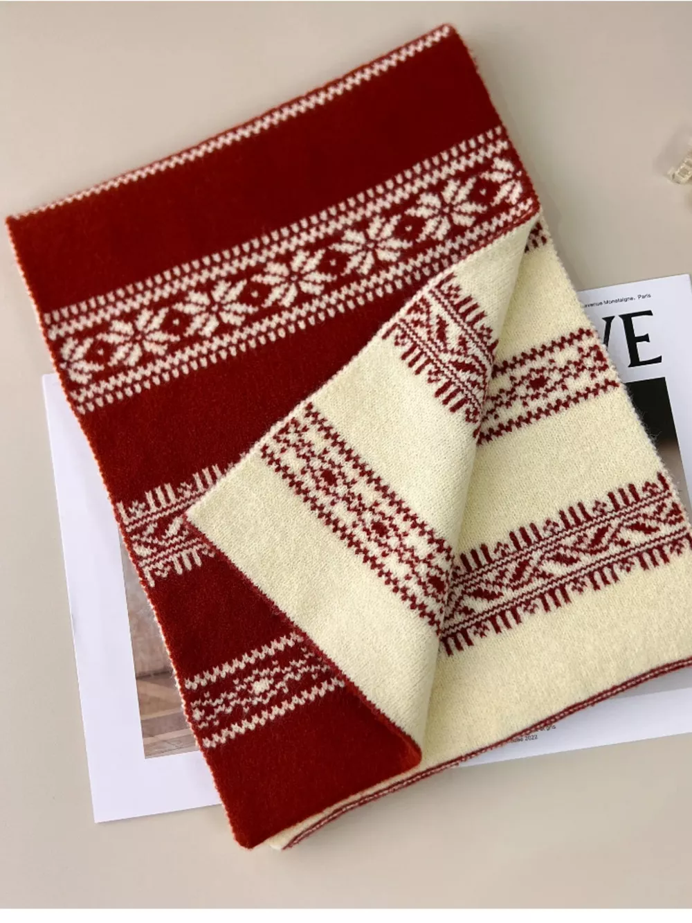 Winter Snowflake Pattern Knitted Scarf