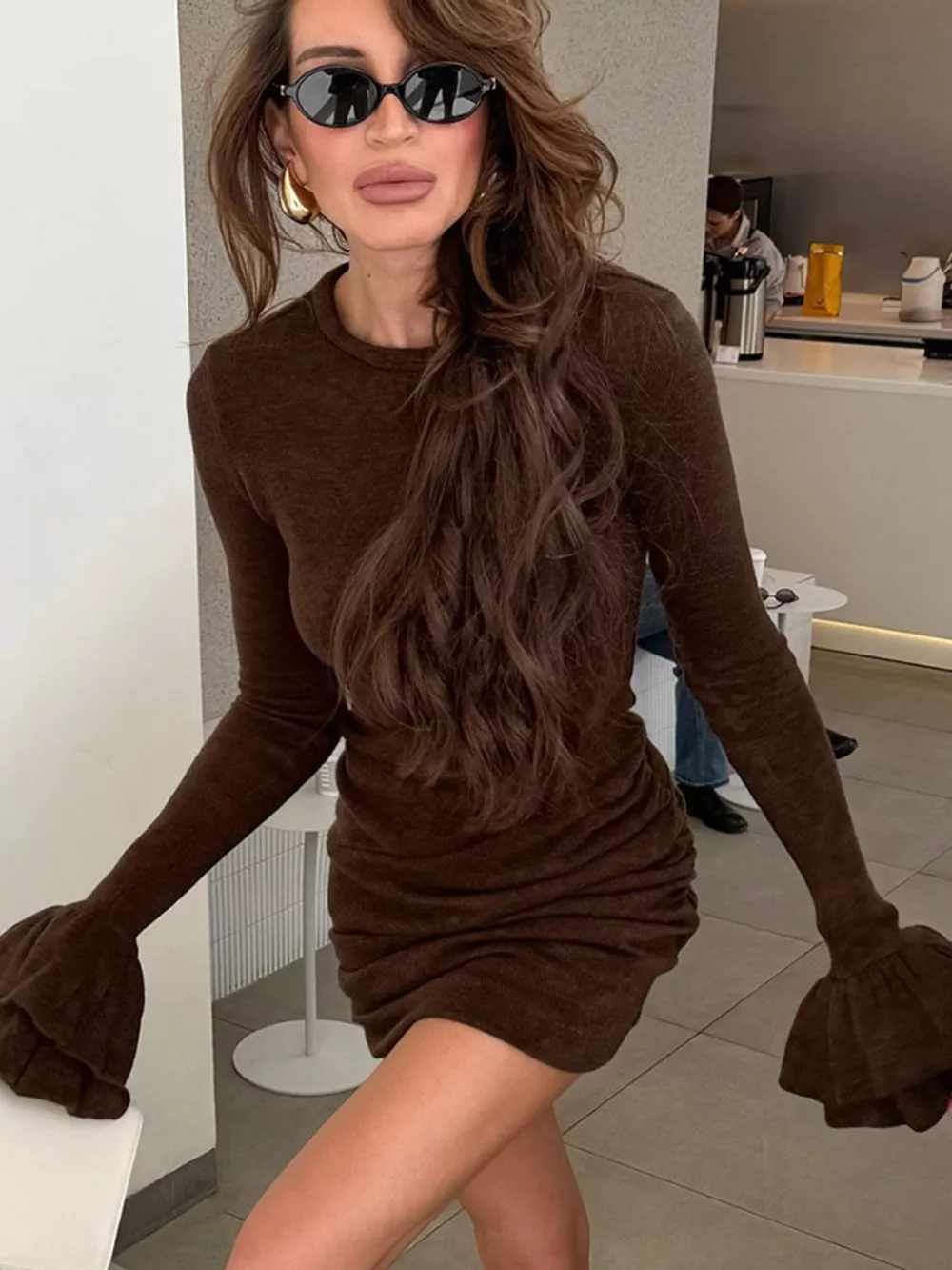 Ruched Flounce Sleeve Knit Dress