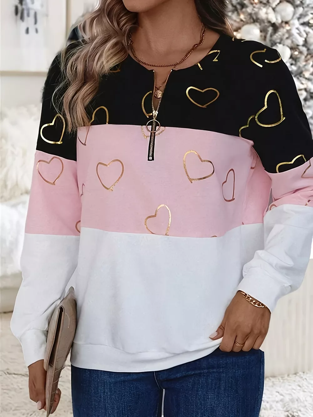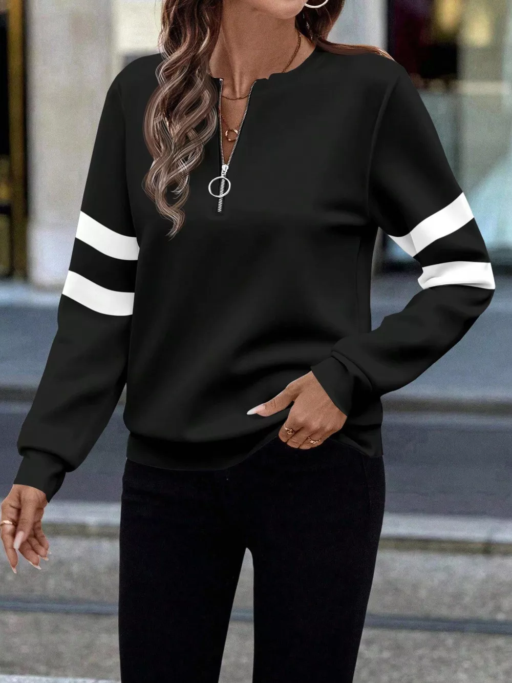 Striped Quarter Zip Long Sleeve Top