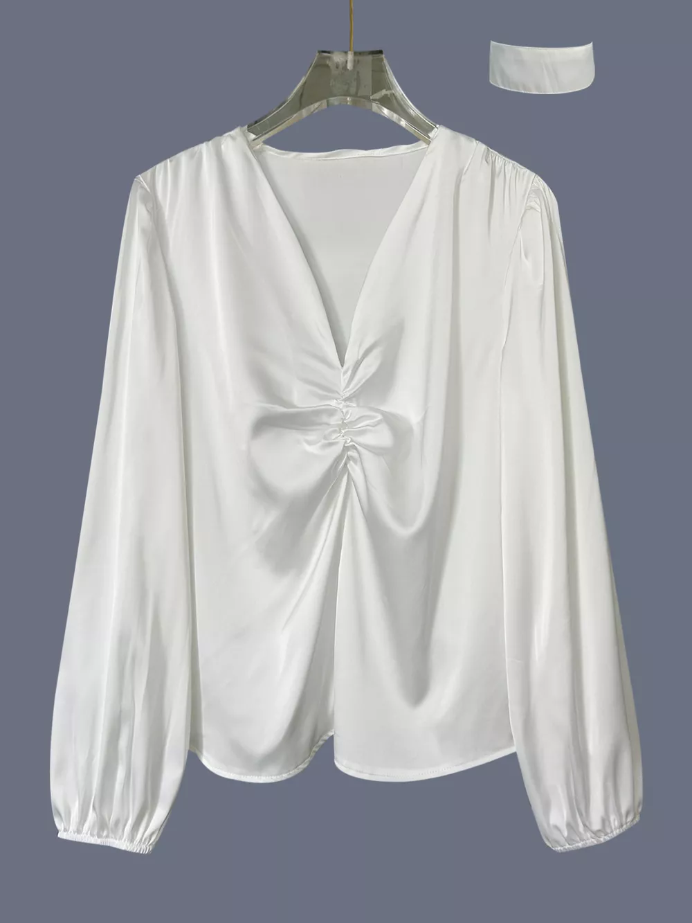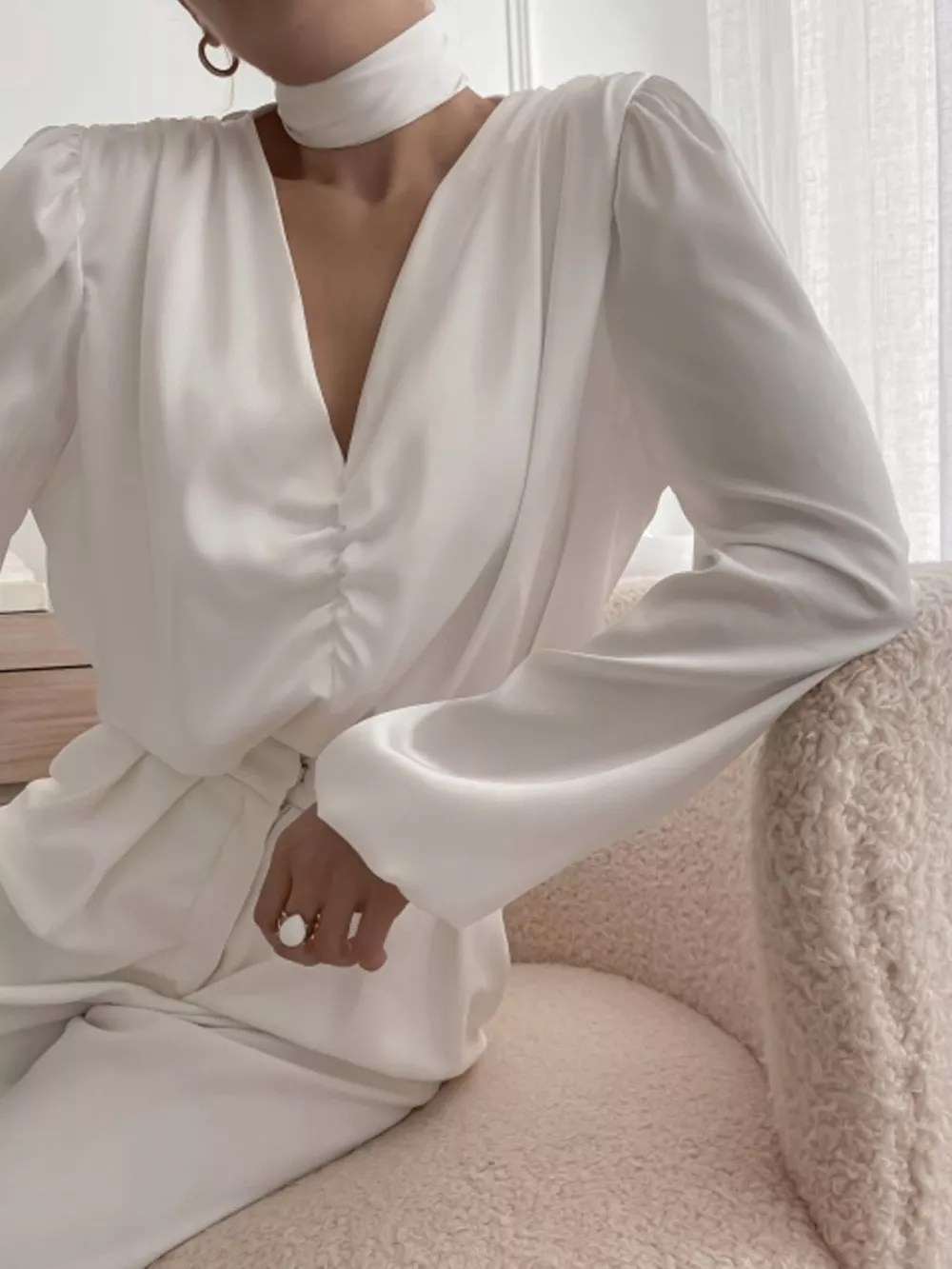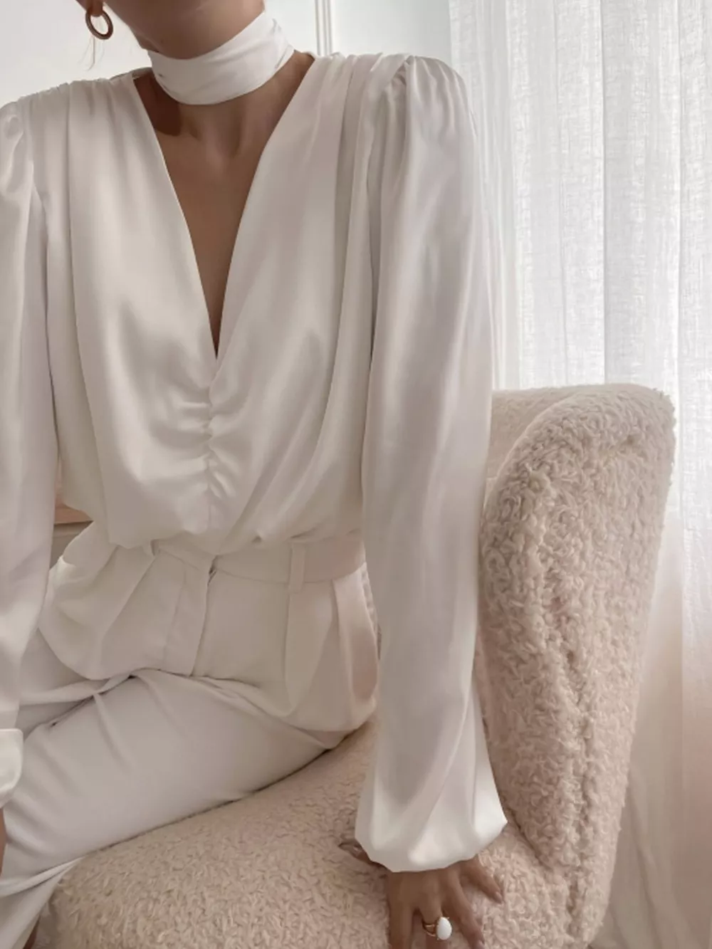 V-Neck Ruched Long Sleeve Blouse