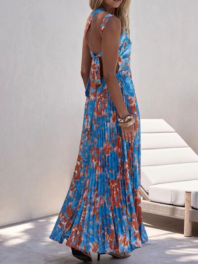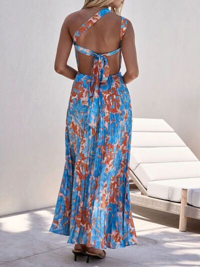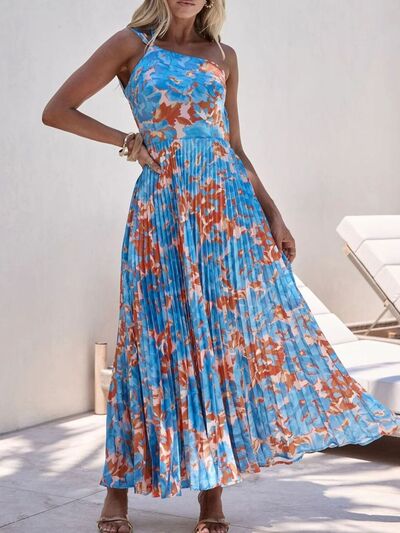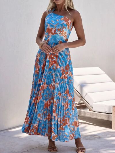 Floral Print One-Shoulder Pleated Dress