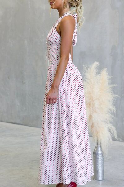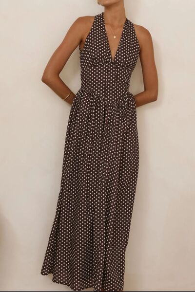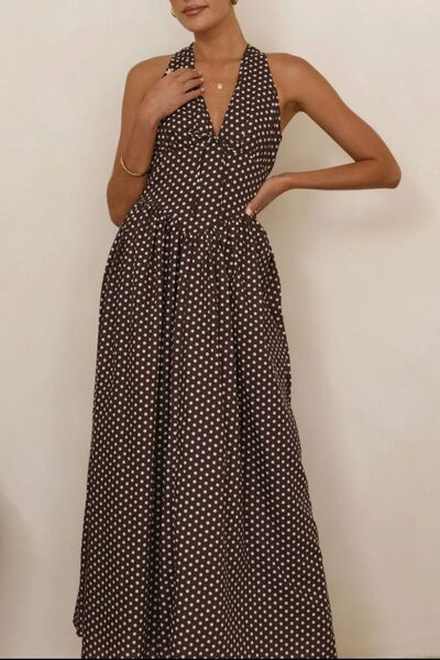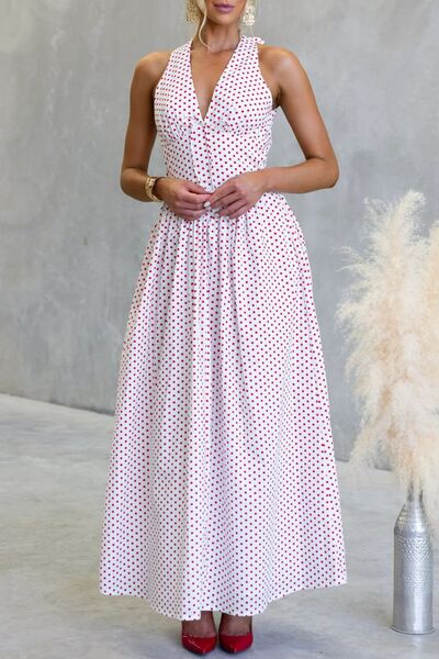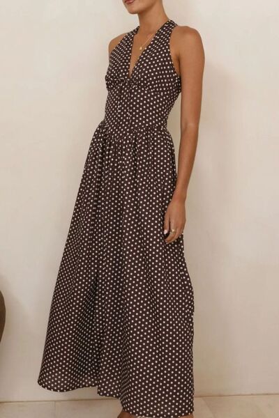 Backless Polka Dot Halter Neck Maxi Dress