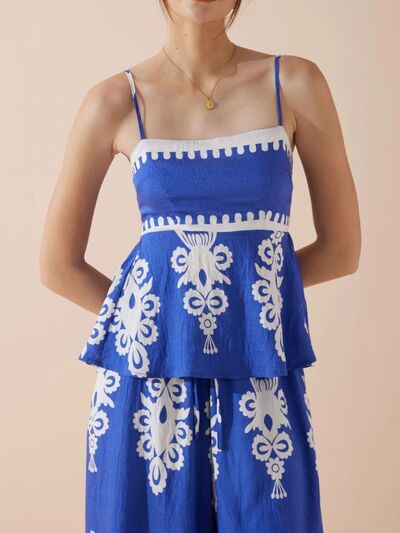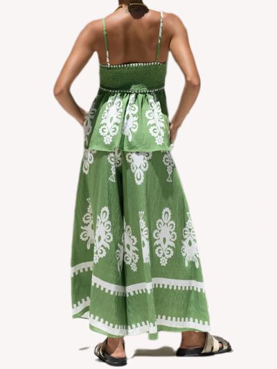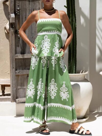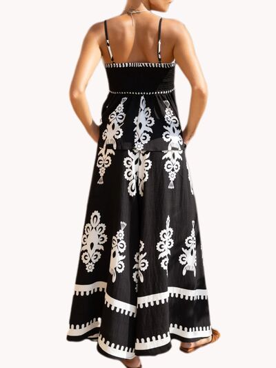 Full Size Printed Cami and Wide Leg Pants Set Plus Size