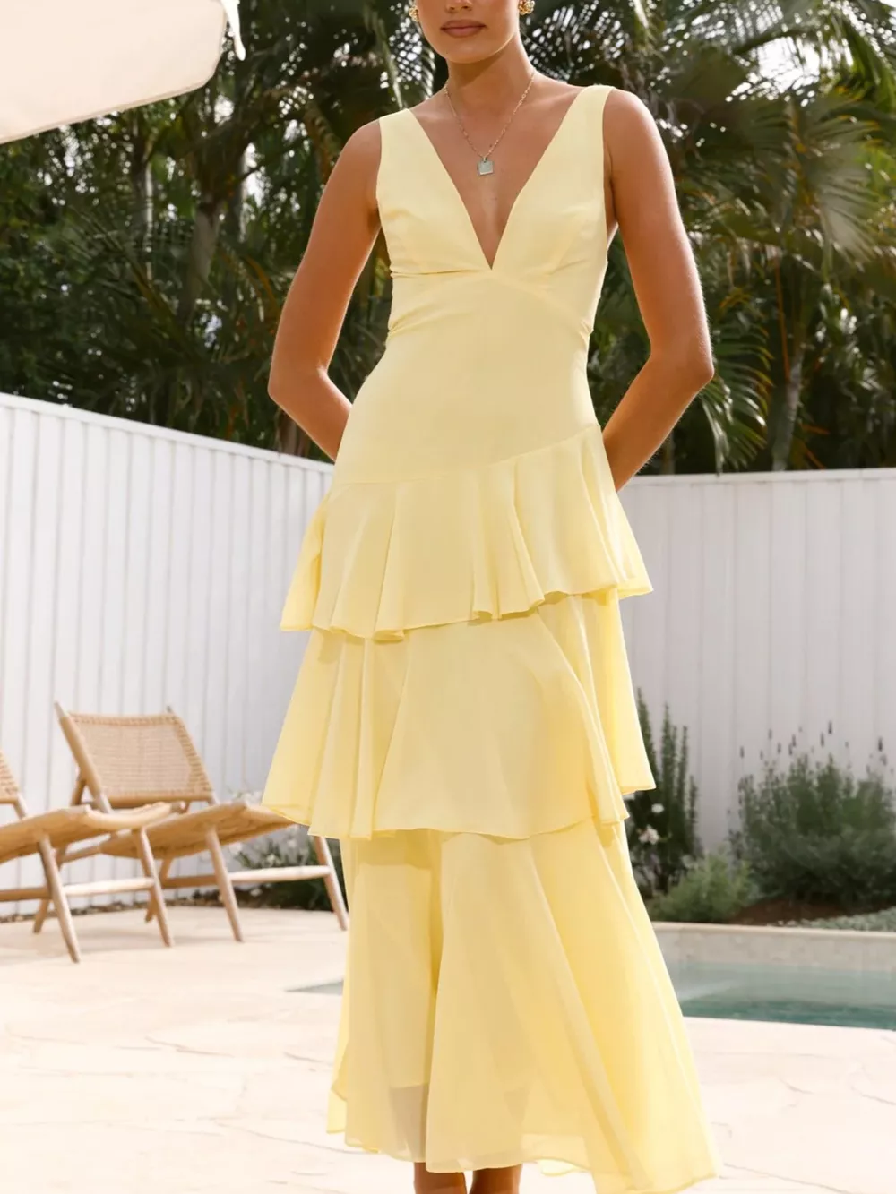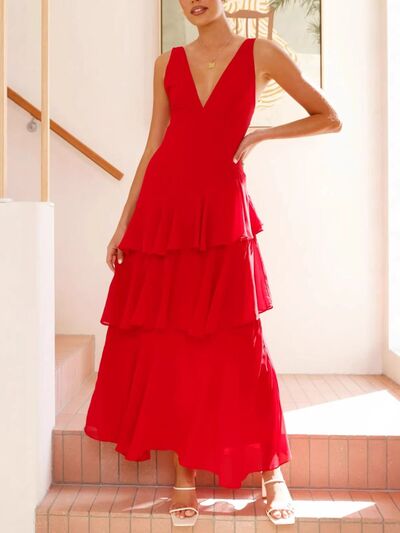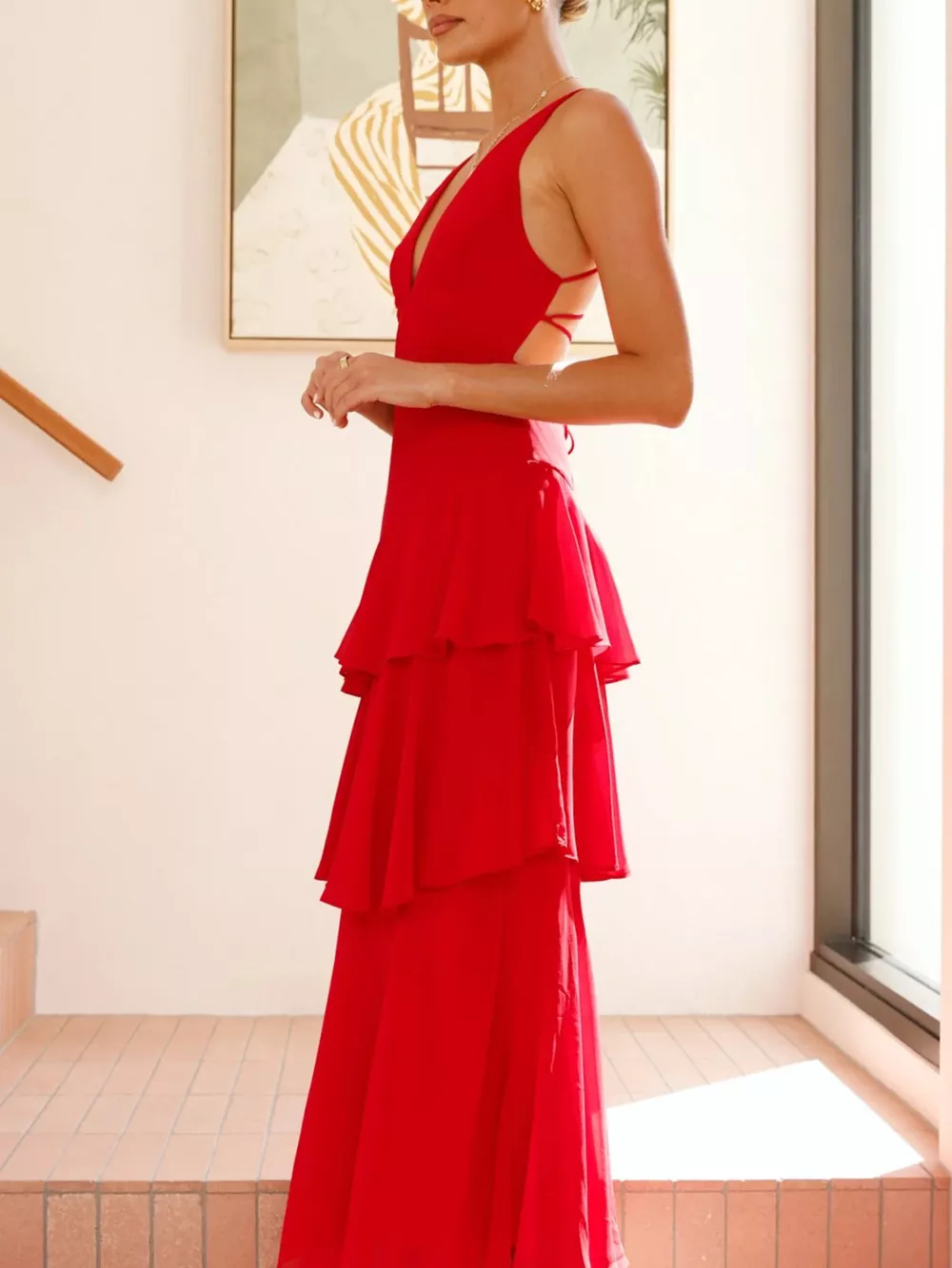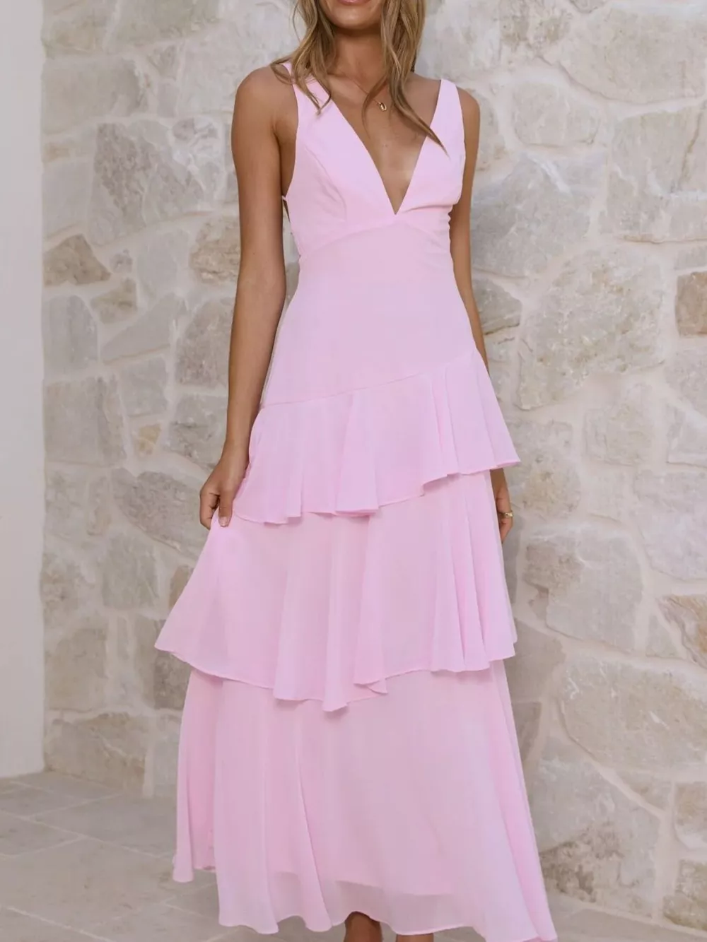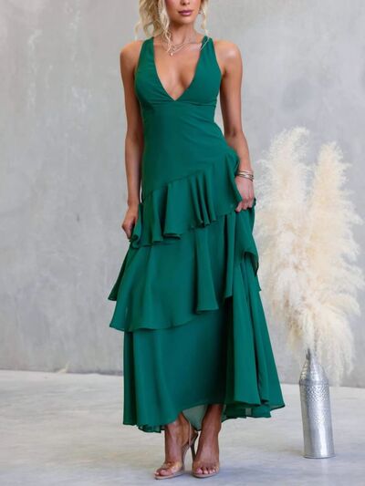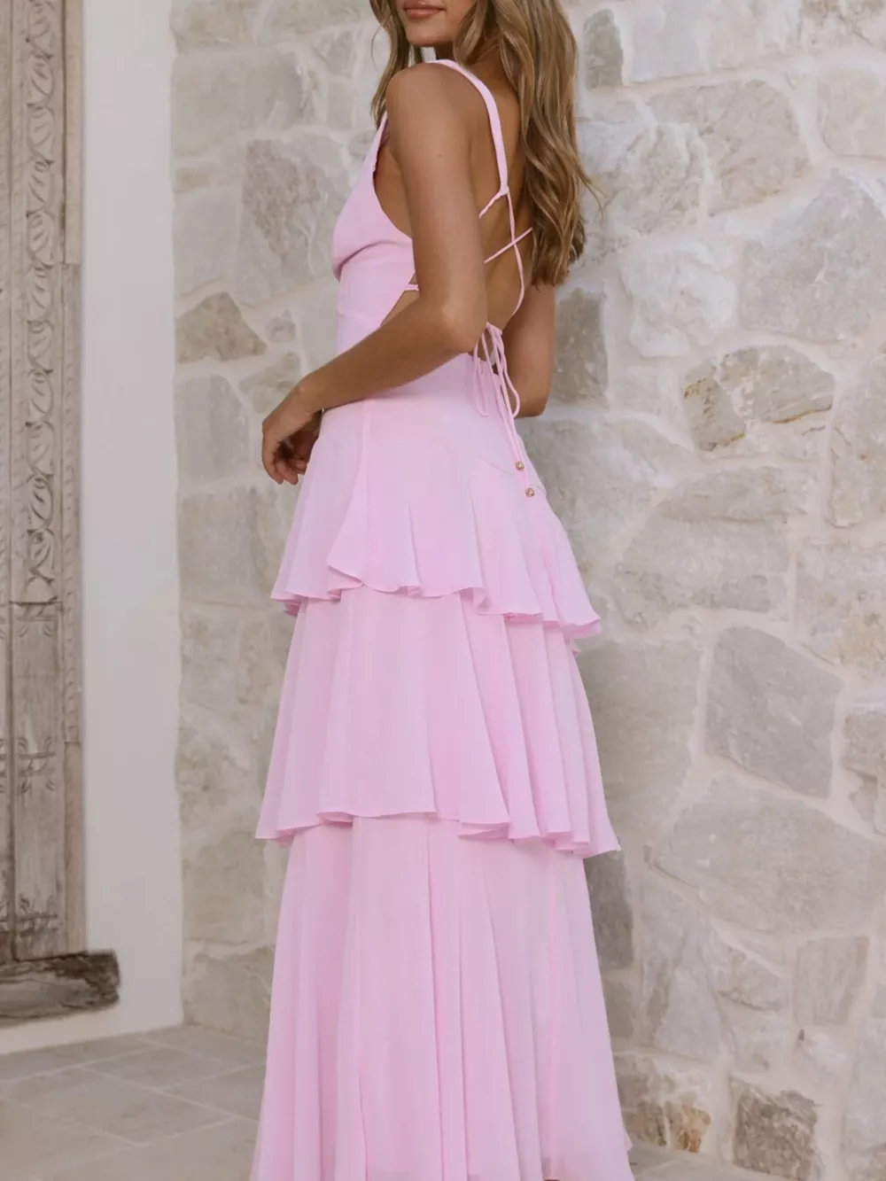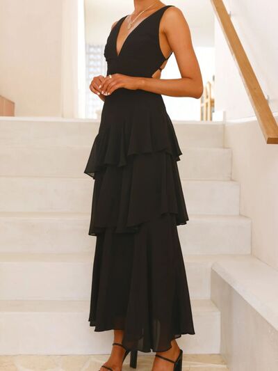 Sleeveless Ruffled Layered Backless Maxi Dress