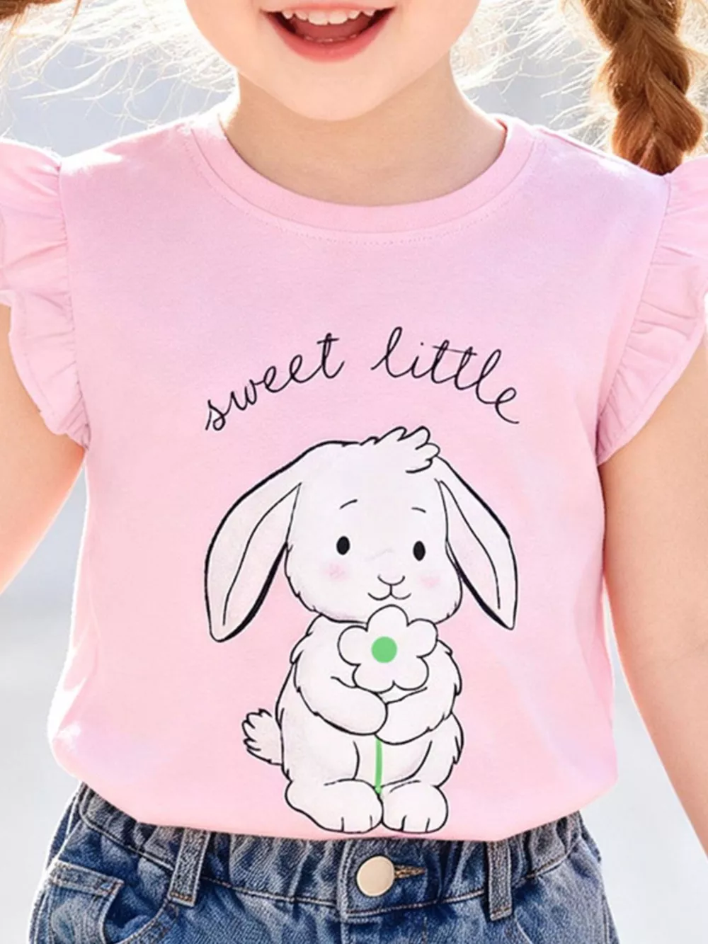 Children's Bunny Graphic Ruffle Sleeve T-Shirt