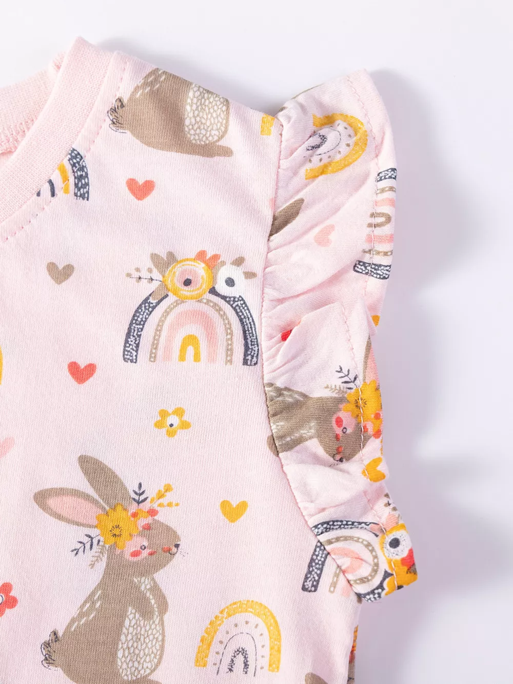 Children's Bunny & Rainbow Print Ruffle Sleeve T-Shirt