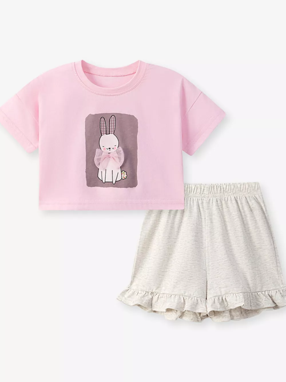 Children's Bunny Round Neck Top and Shorts Set