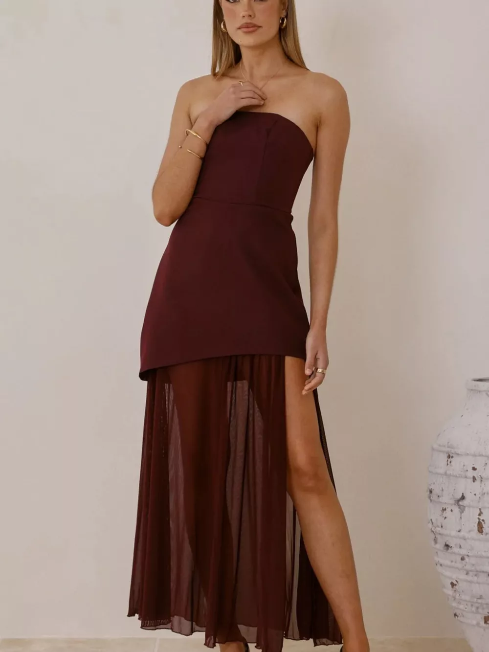 High Slit Mesh Tube Maxi Dress