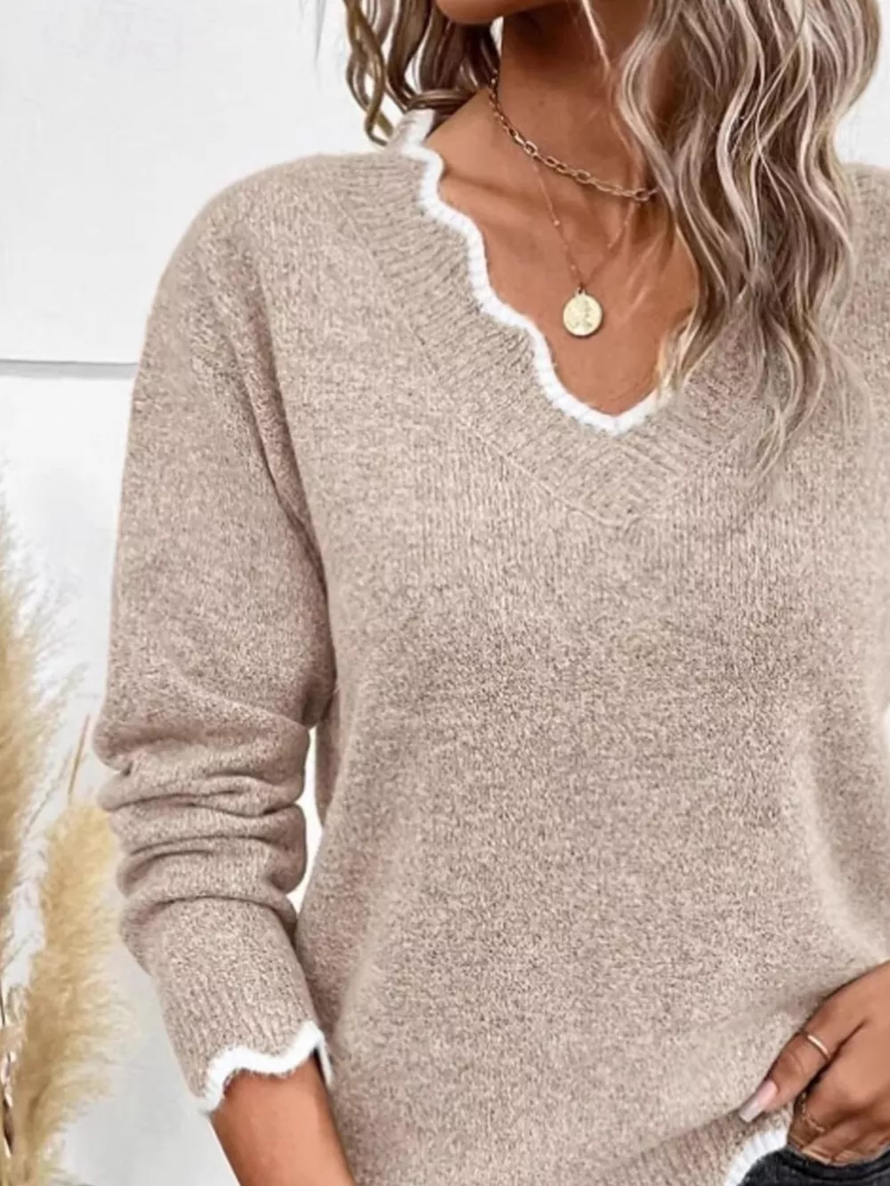 Contrast Trim V-Neck Sweater