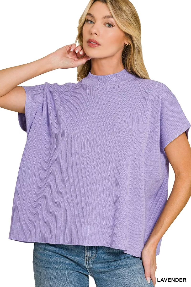 Zenana Viscose Mock Neck Short Sleeve Boxy Sweater