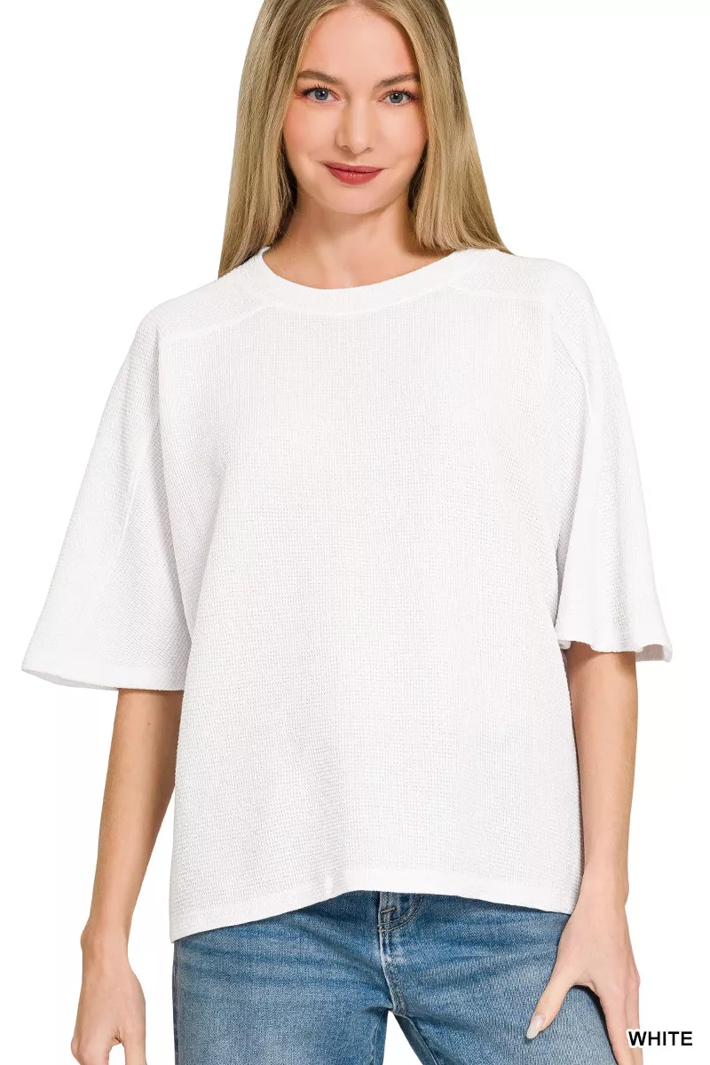 The Double Knit Short Sleeve Top is a versatile and chic addition to your wardrobe. Made from double knit fabric, this top offers both comfort and style. The short sleeves make it perfect for layering or wearing on its own in warmer weather. The classic design and solid color make it easy to pair with a variety of bottoms for different looks. Elevate your everyday style with the polished simplicity of the Double Knit Short Sleeve Top.