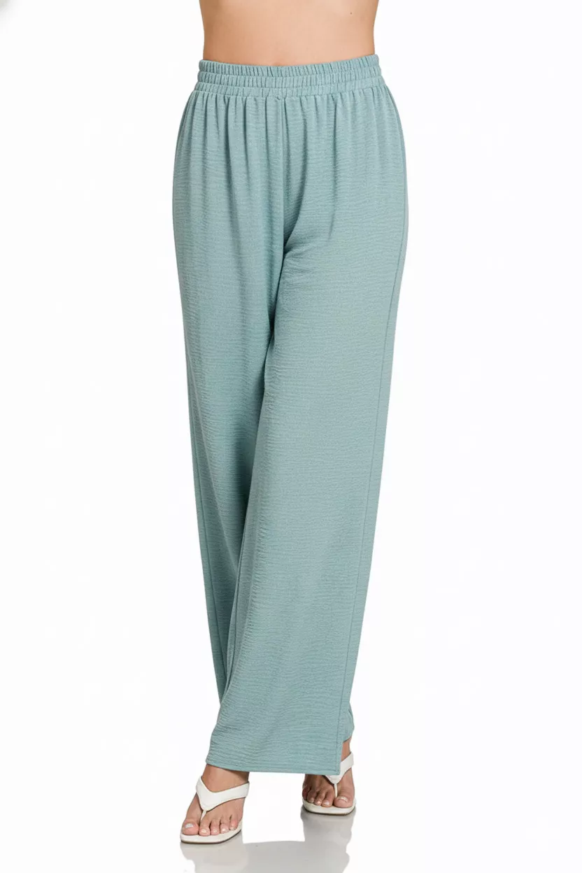 The Woven Airflow Elastic Waistband Pants are a comfortable and stylish choice for everyday wear. Designed with a lightweight woven material, these pants offer breathability and ease of movement. The elastic waistband ensures a comfortable and adjustable fit for all-day comfort. These versatile pants can be dressed up with a blouse and heels or paired with a casual top for a relaxed look. Stay effortless and chic with these airflow pants that combine comfort with style.