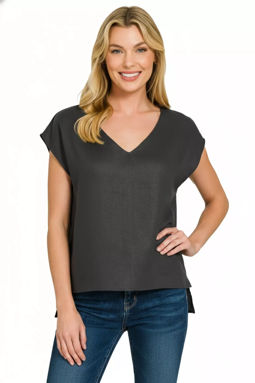 Zenana Linen V-Neck Sleeveless Top