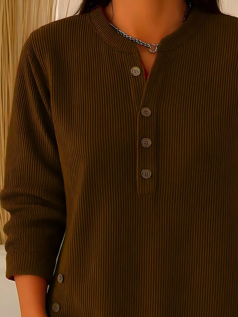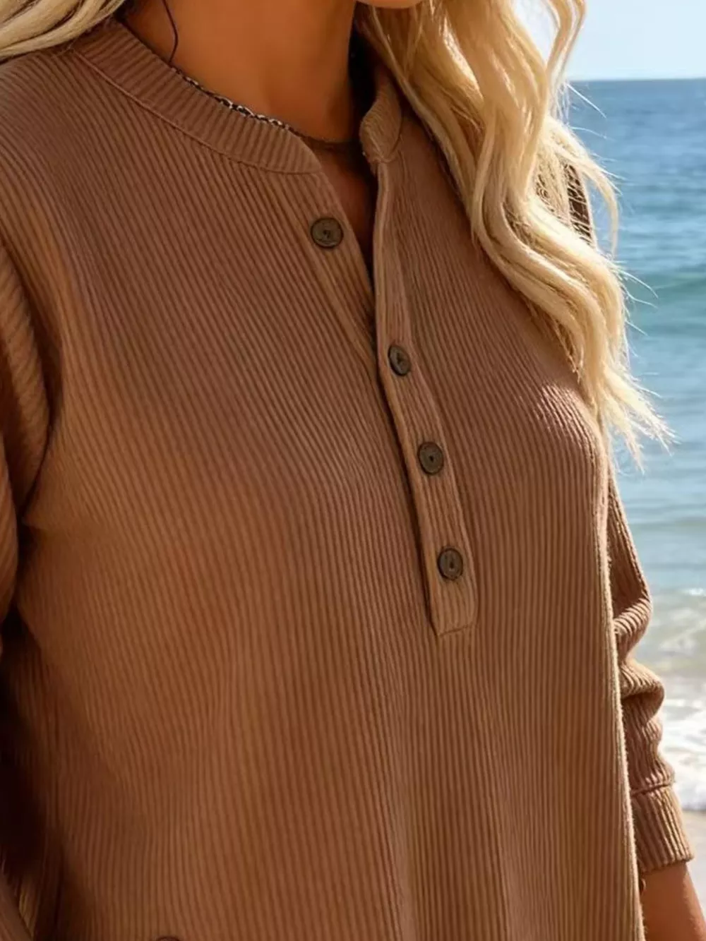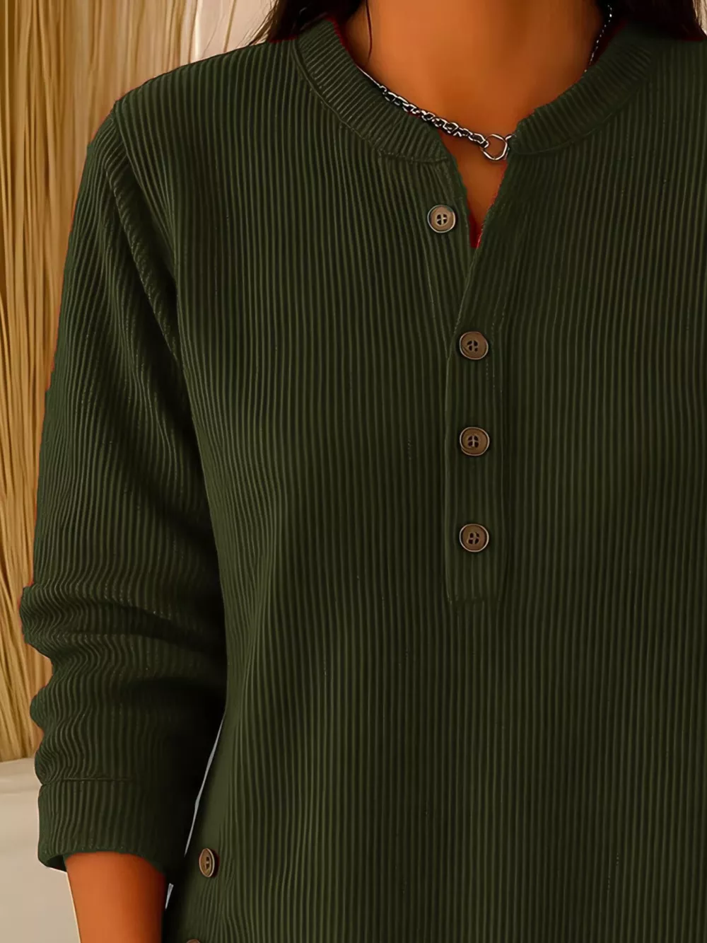 Full Size Ribbed Half Button Henley Top Plus Size