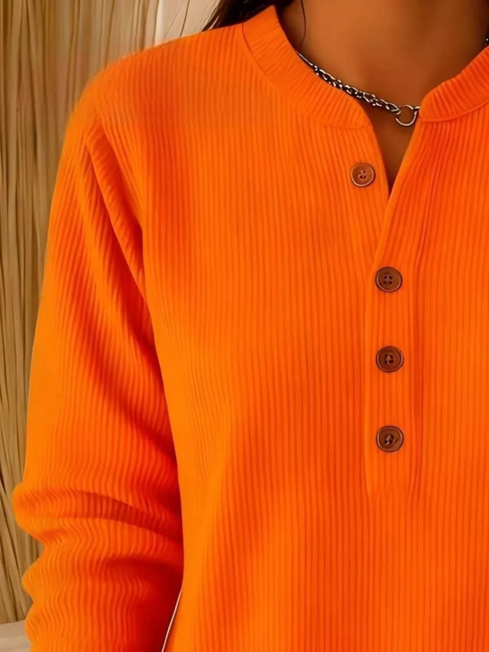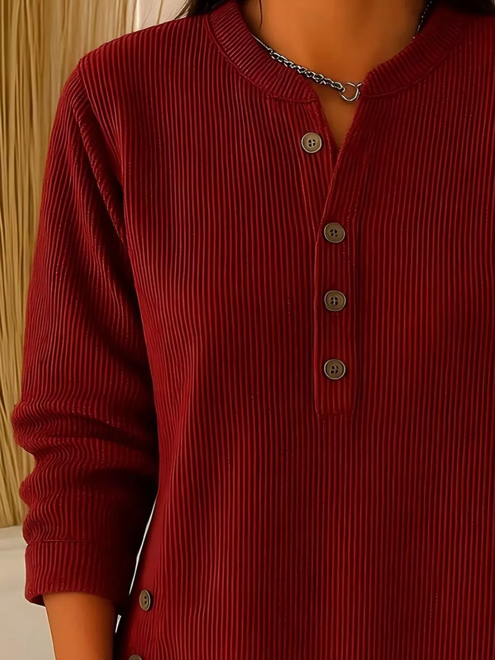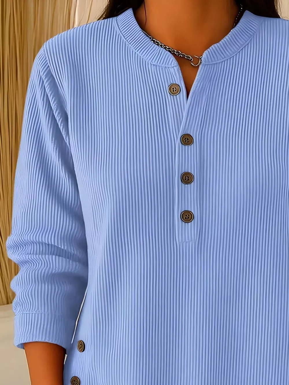 Full Size Ribbed Half Button Henley Top Plus Size