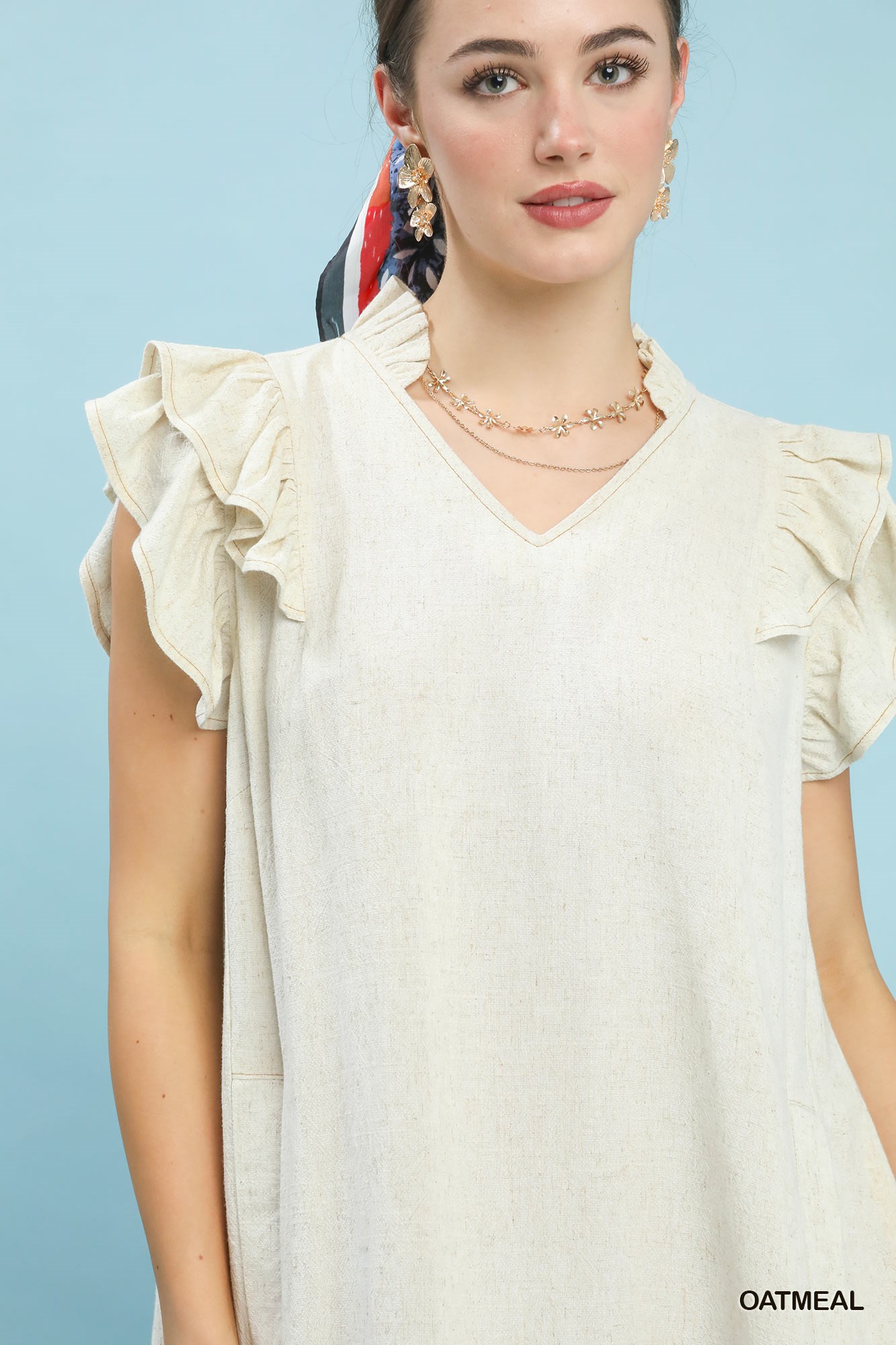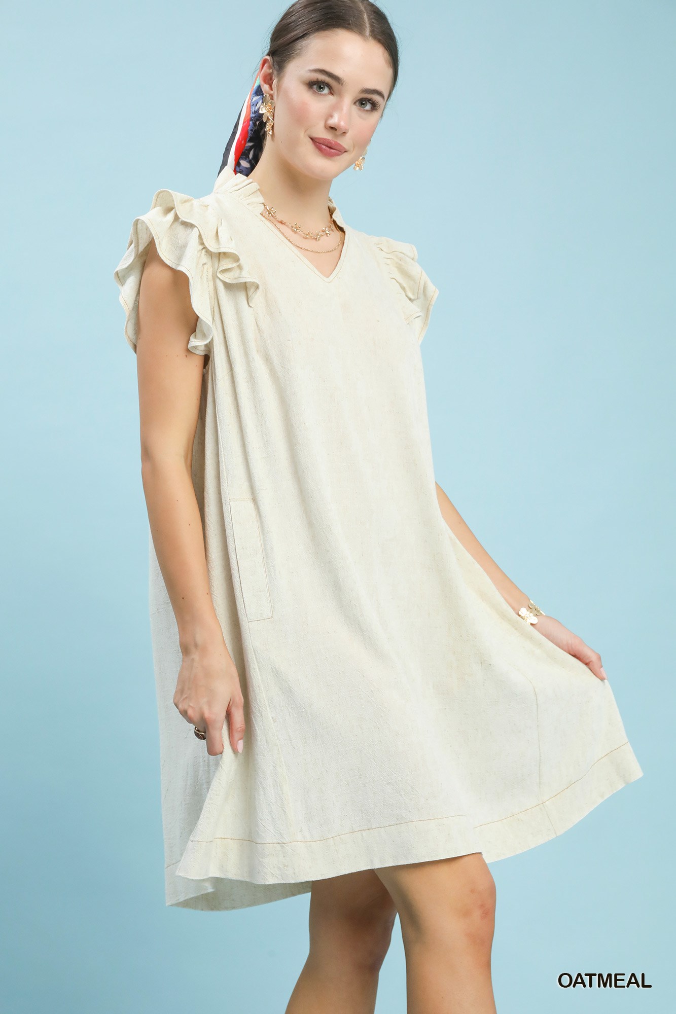 Umgee Linen Flutter Sleeve Shift Dress with Pockets