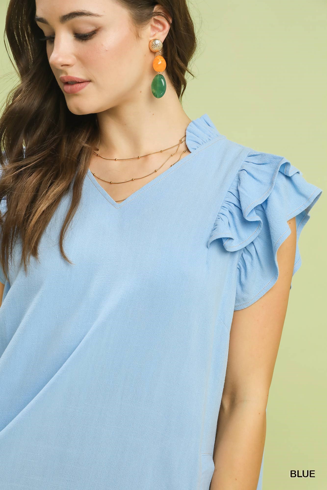 Umgee Linen Flutter Sleeve Shift Dress with Pockets