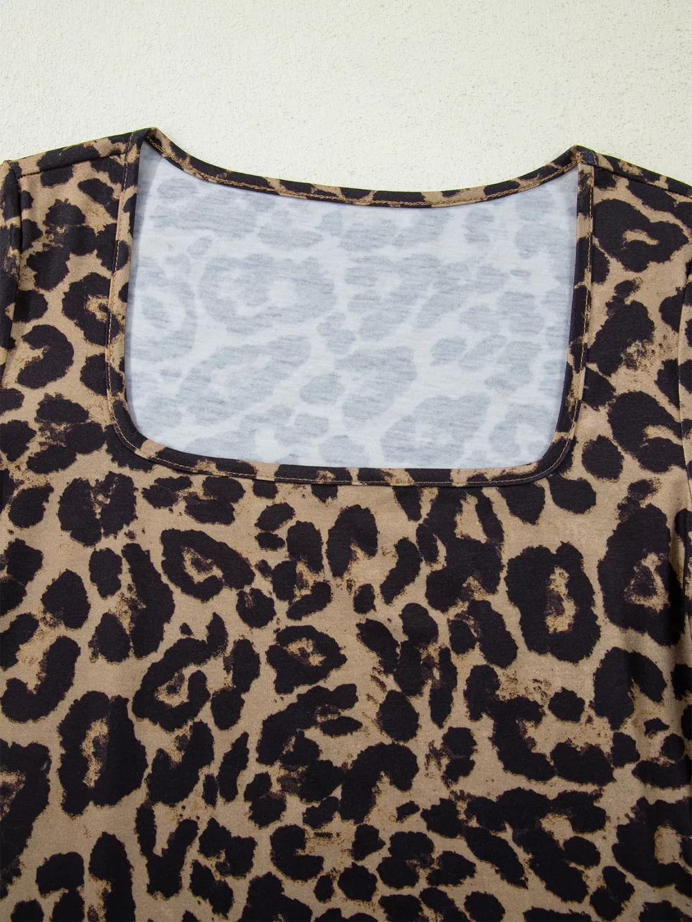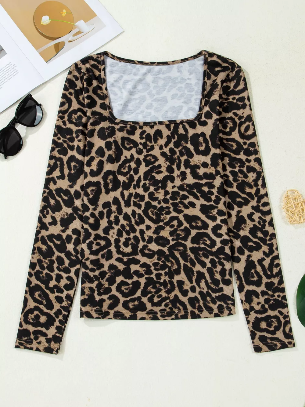 Leopard Print Square Neck Long Sleeve Top