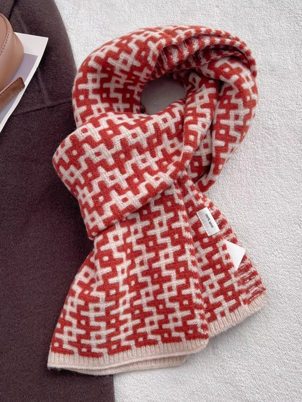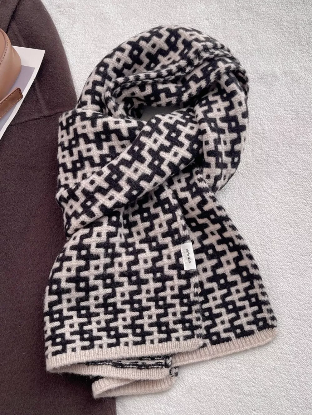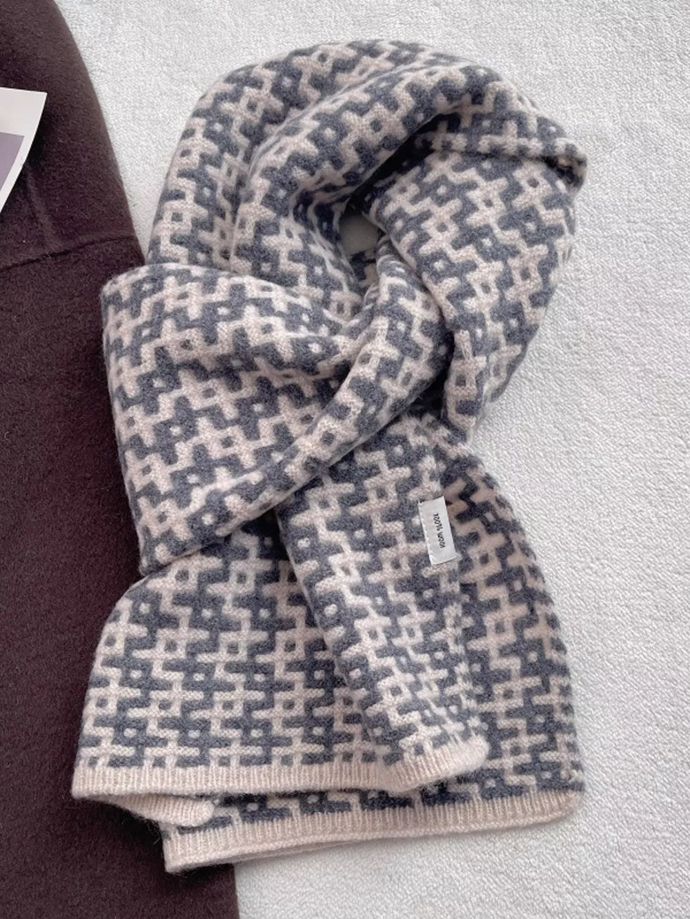 Wool Geometric Pattern Knitted Warm Scarf