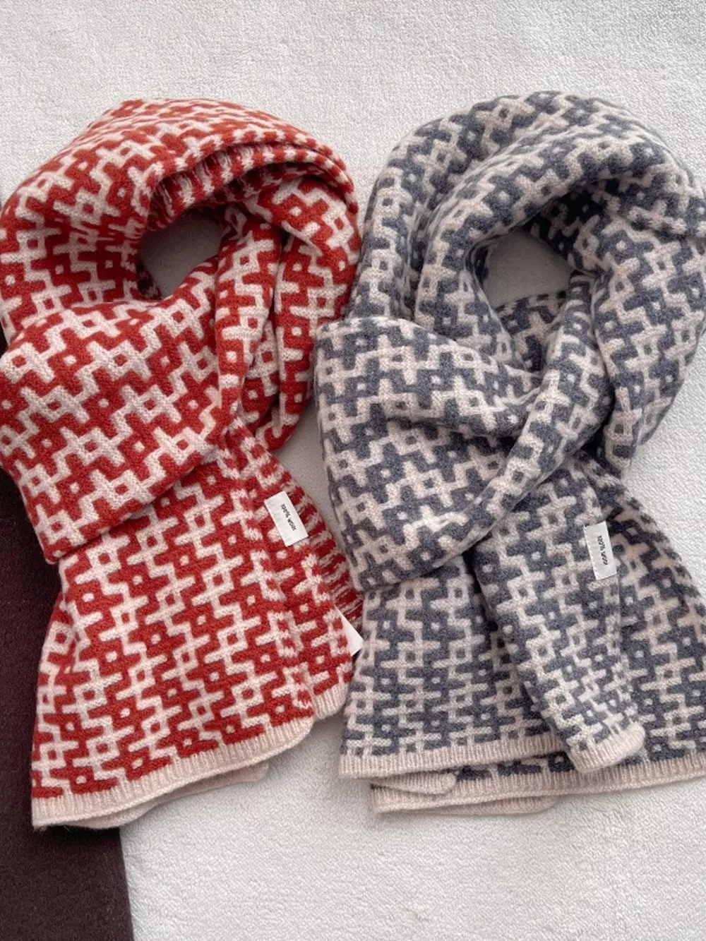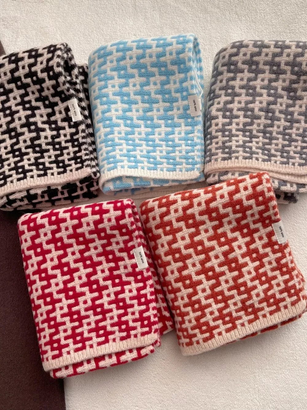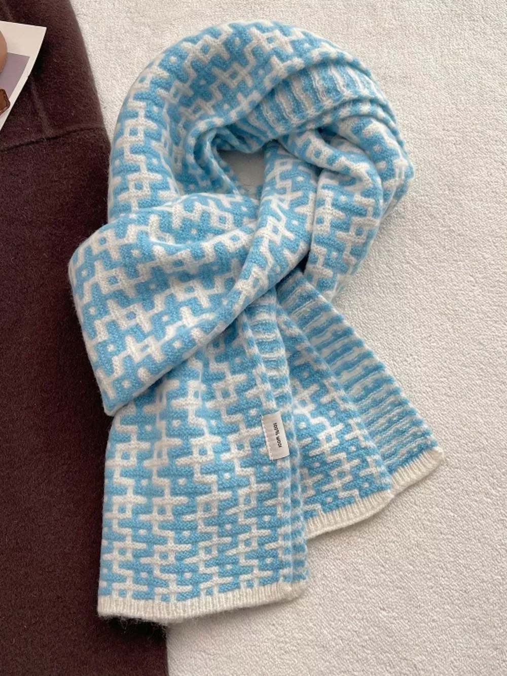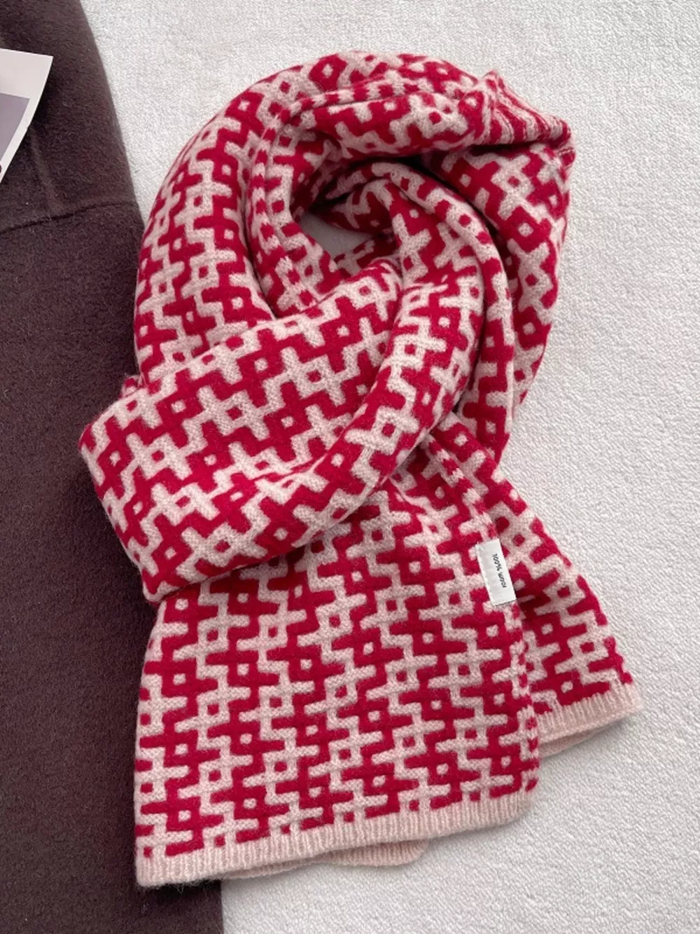 Wool Geometric Pattern Knitted Warm Scarf