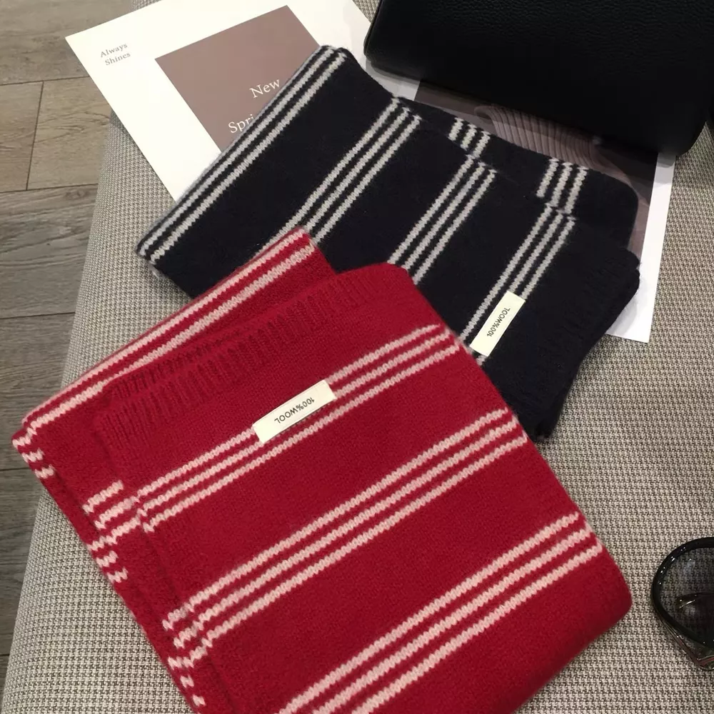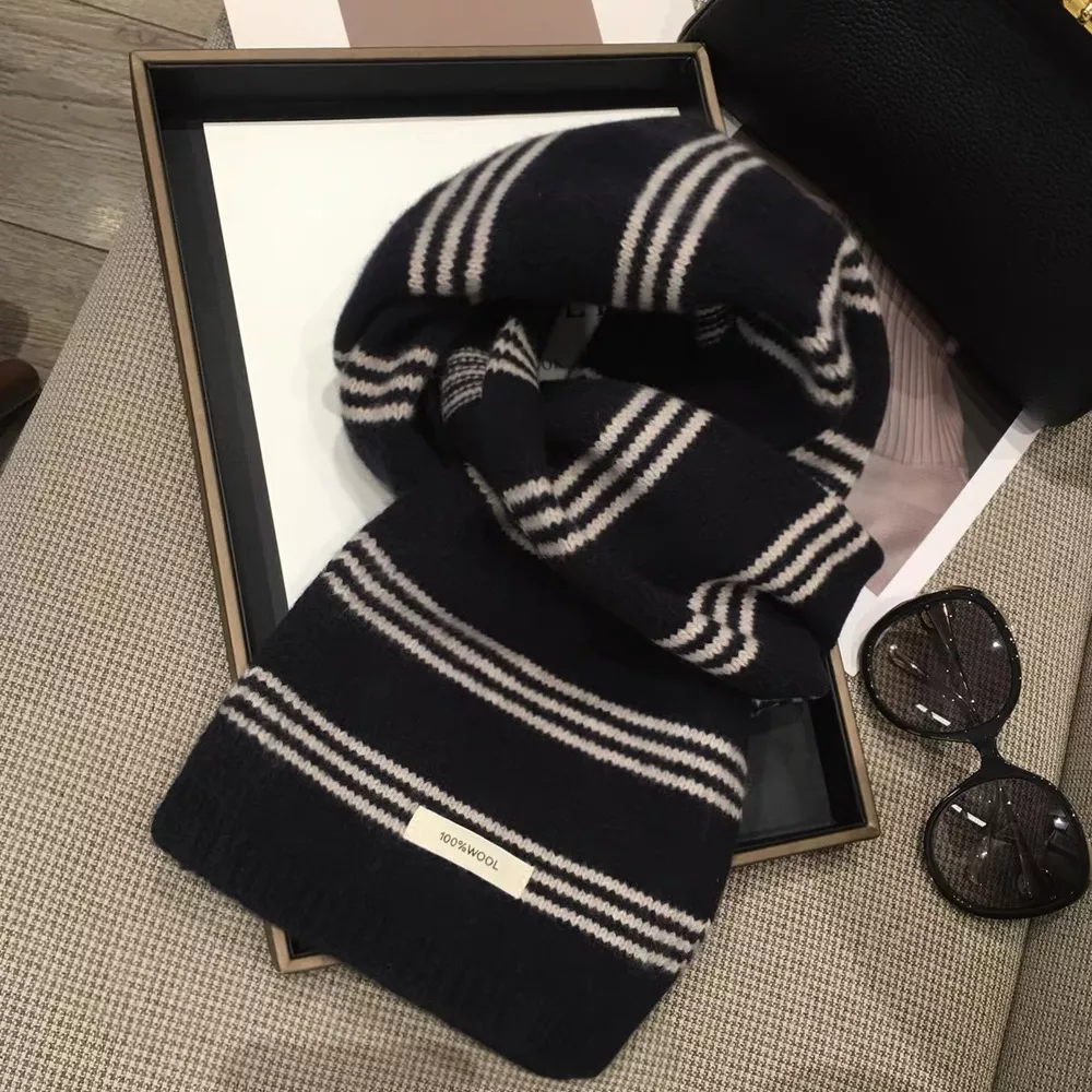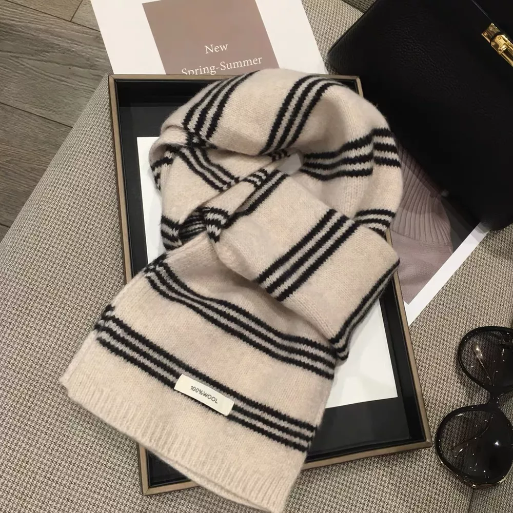 Wool Striped Contrast Knit Warm Scarf