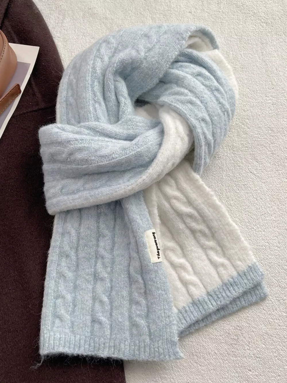 Two Tone Cable knit Warm Scarf