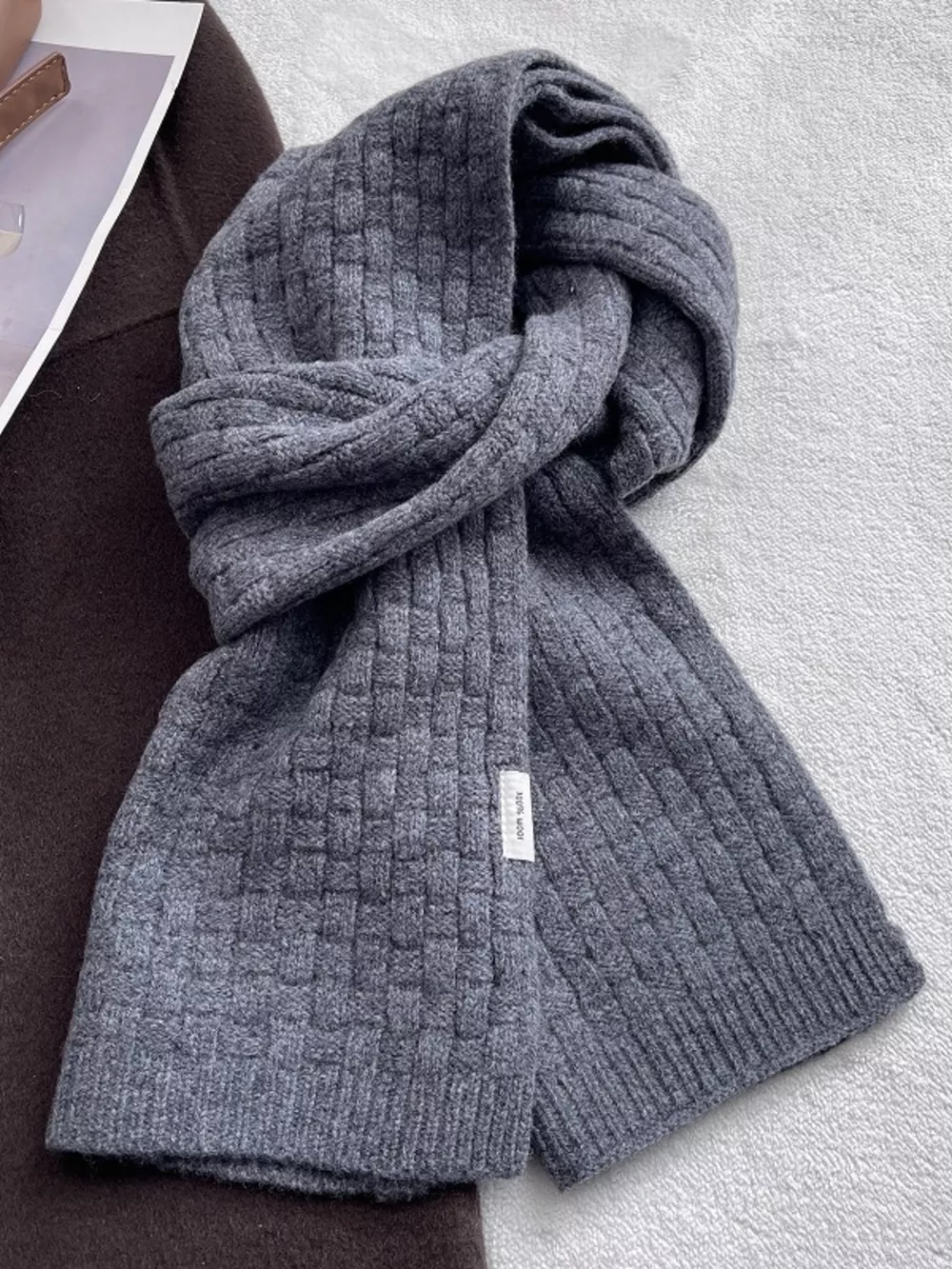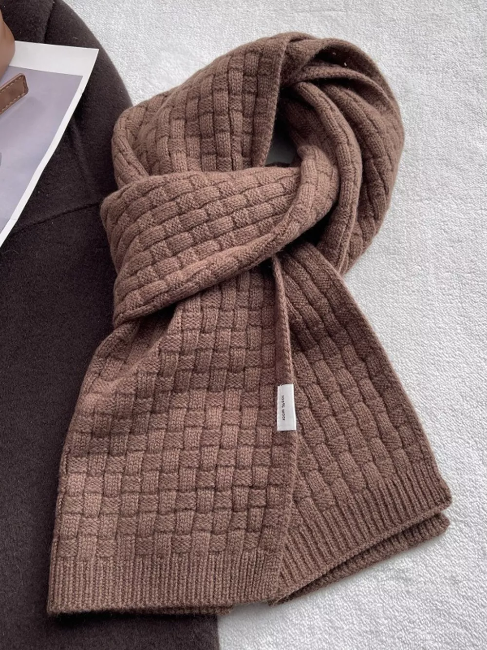 Wool Woven Pattern Knitted Scarf