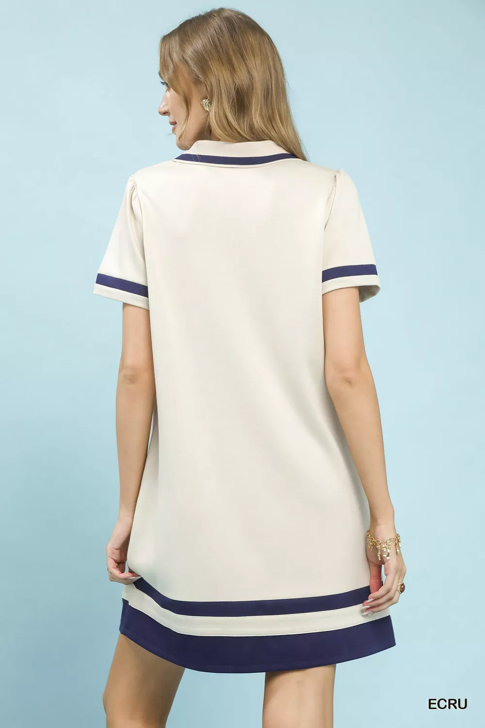Umgee Striped Contrast Short Sleeve Shift Dress