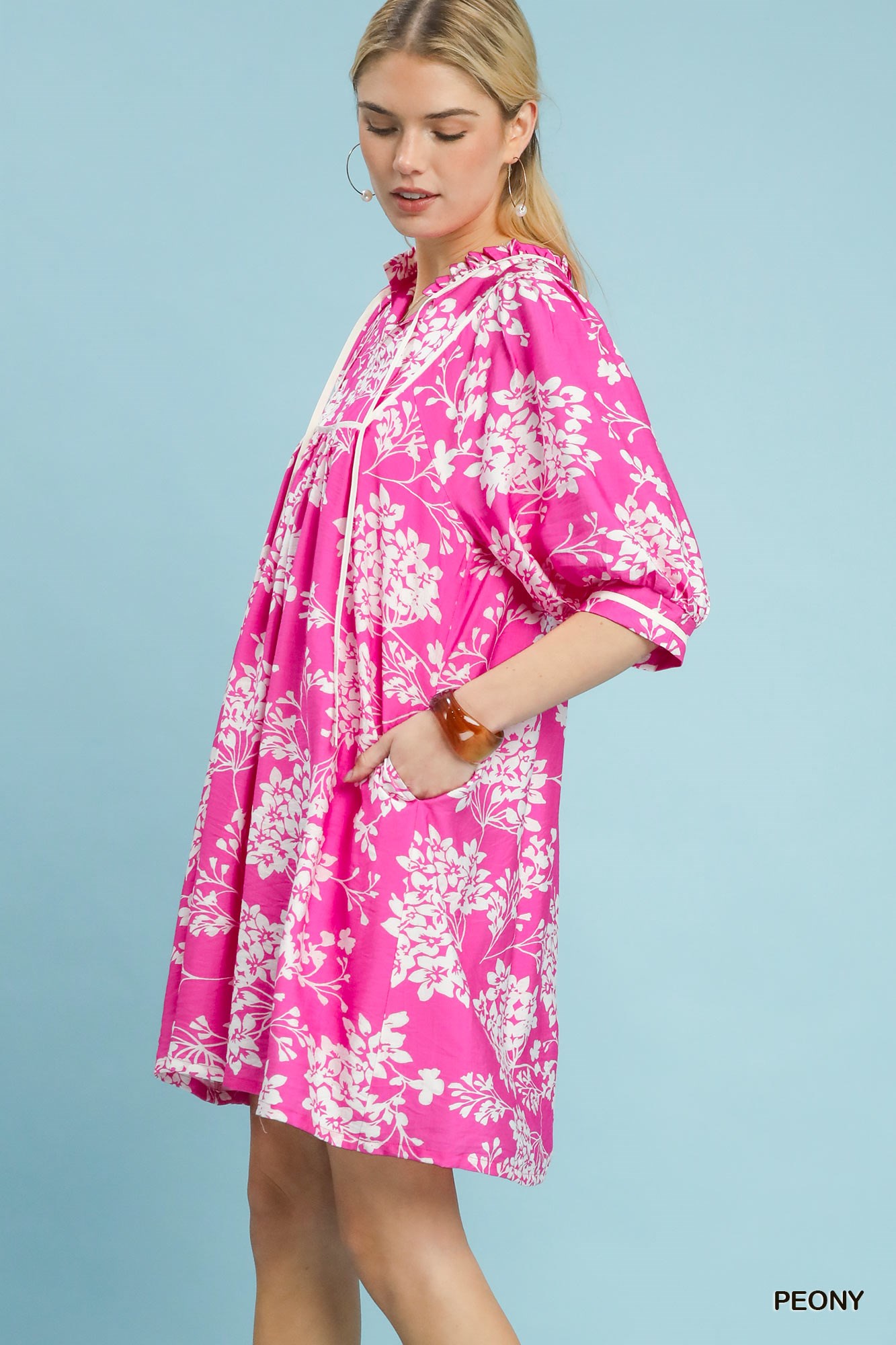 Umgee Floral Babydoll Dress with Pockets