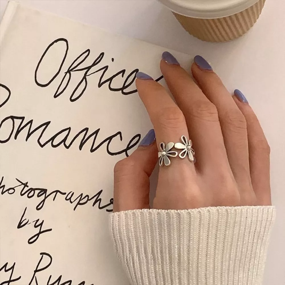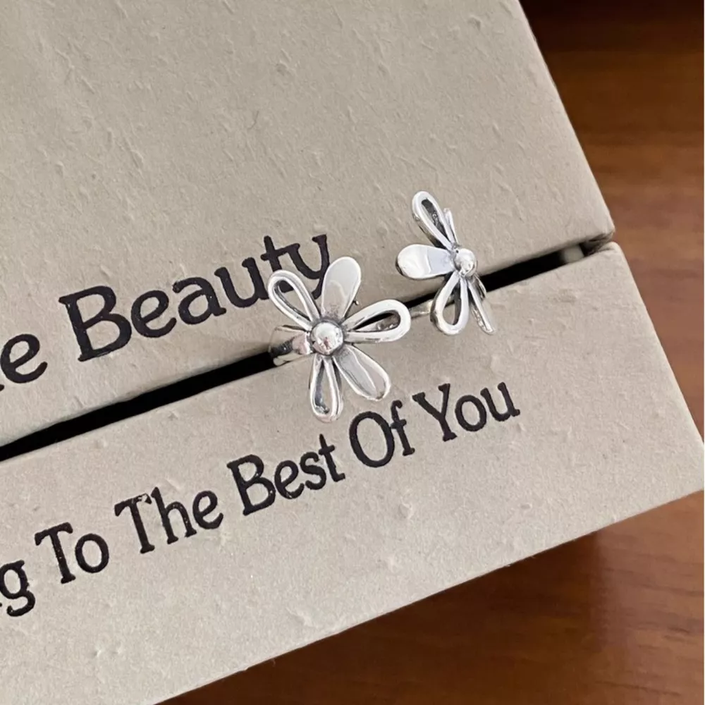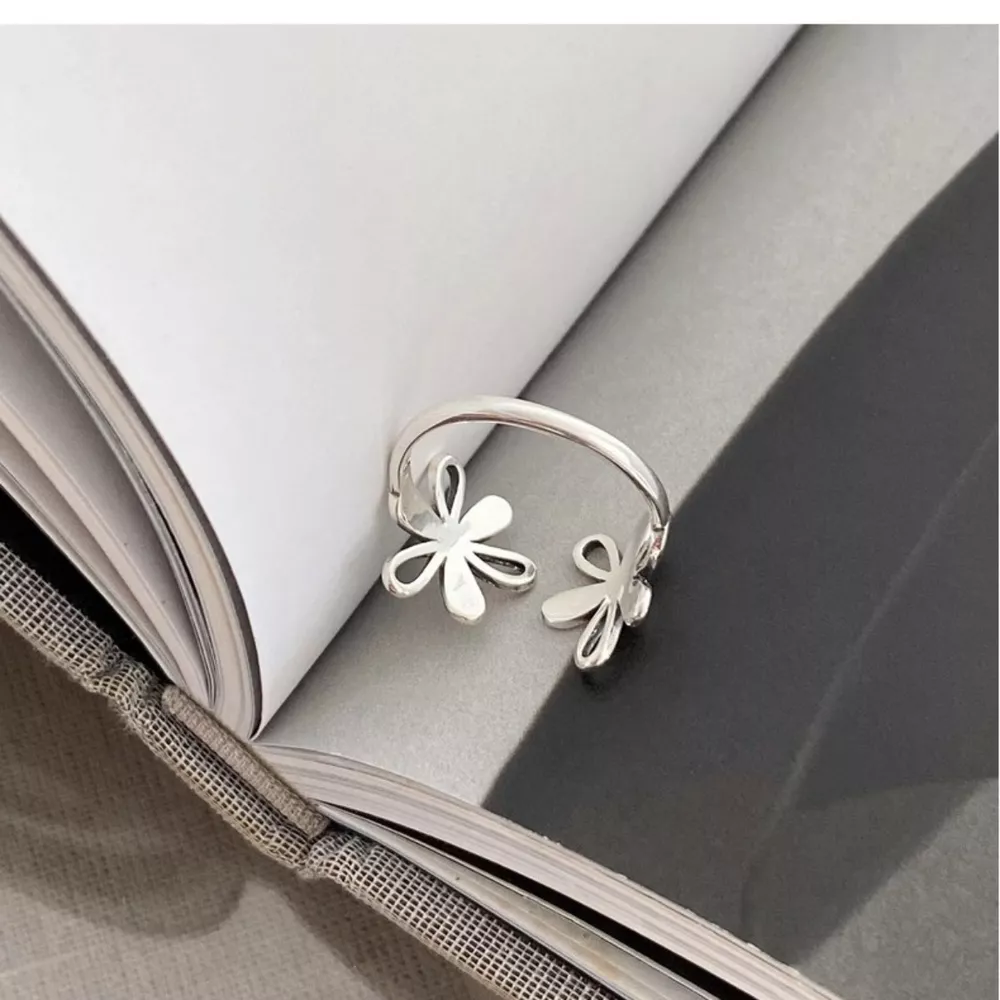 925 Sterling Silver Flower Open Ring