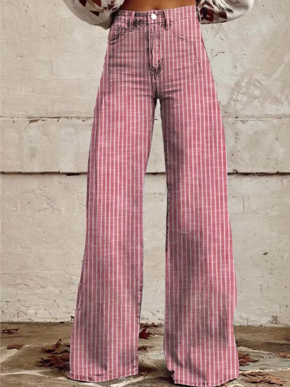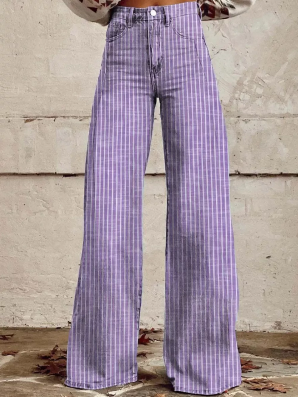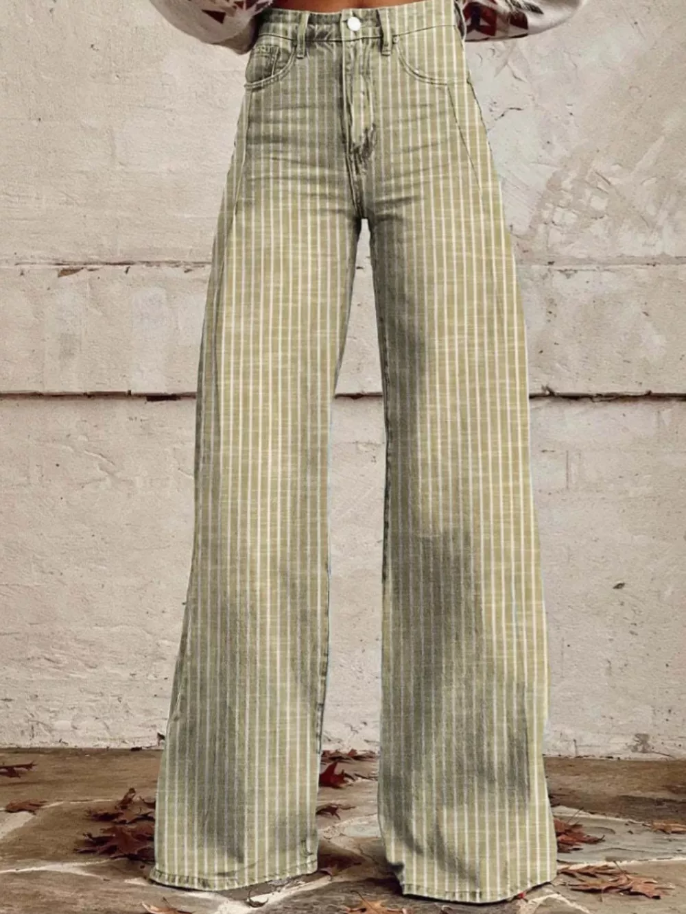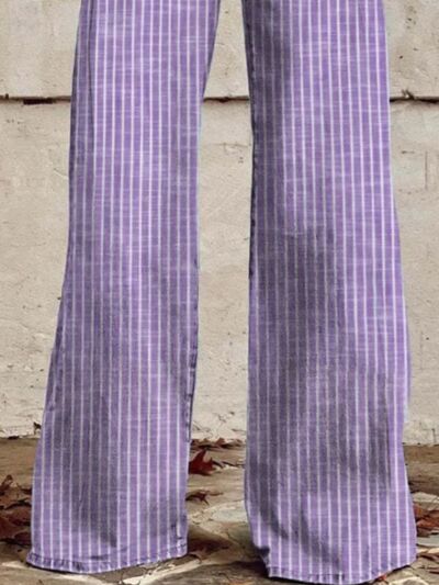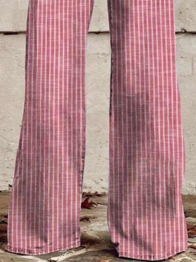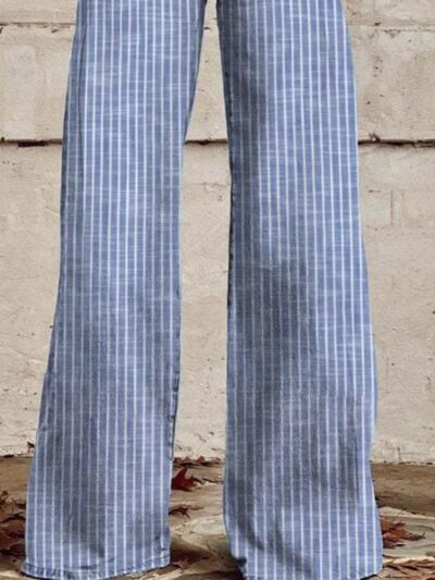 Striped High-Waisted Wide Leg Jeans