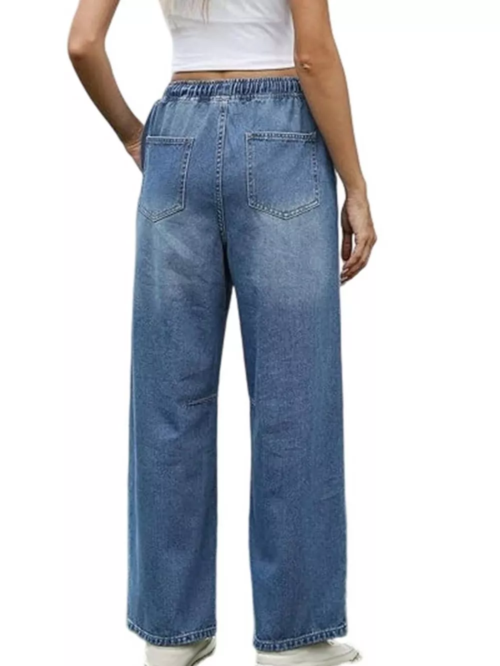 Elastic Waist Wide Leg Jeans