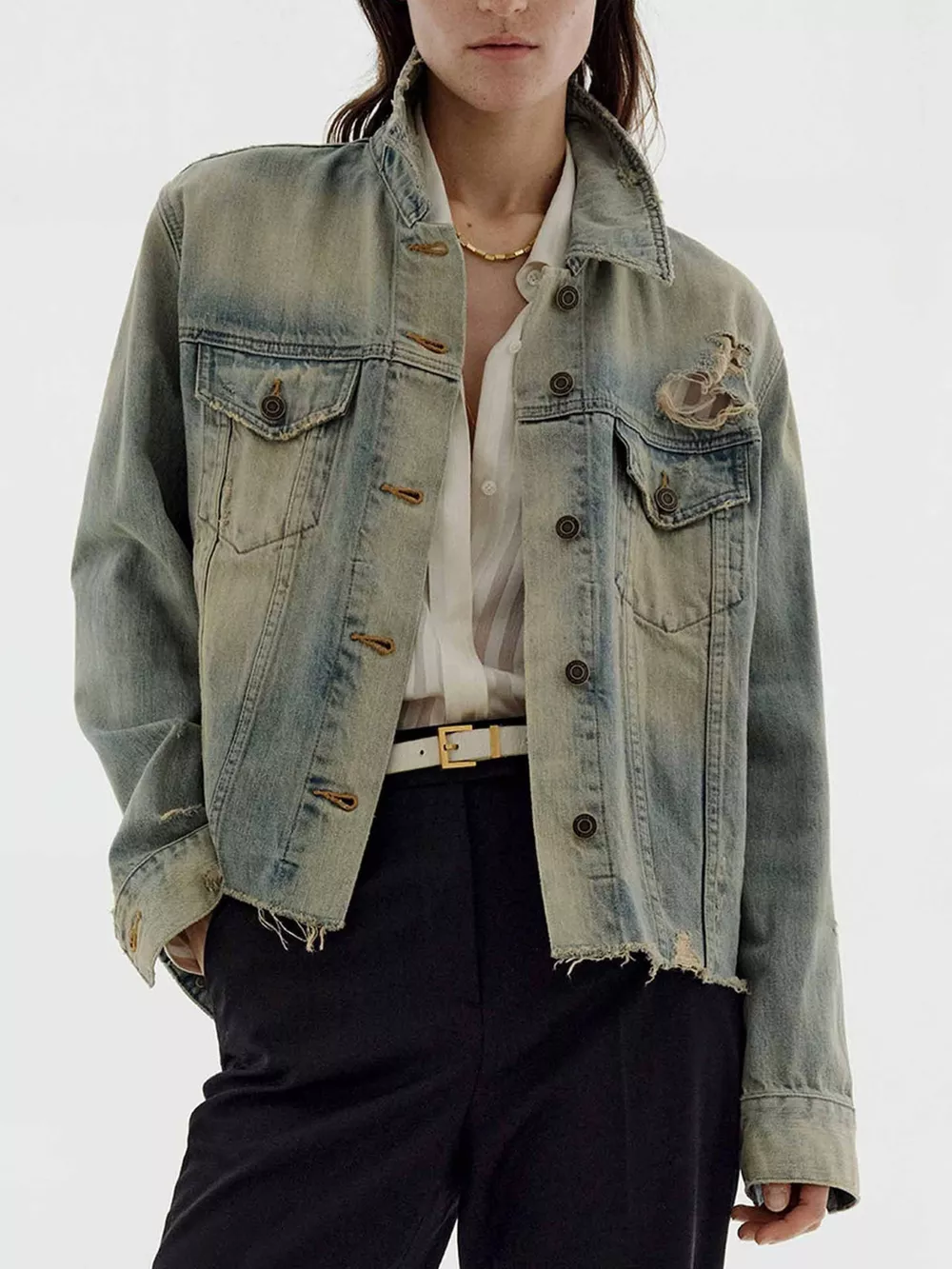 Distressed Wash Button Up Denim Jacket