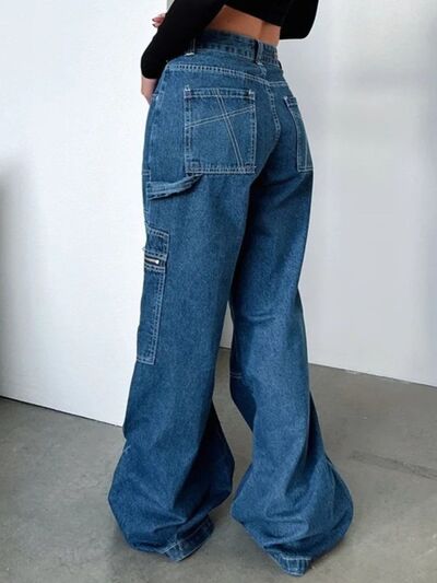 Zipper Pocket Wide Leg Cargo Jeans