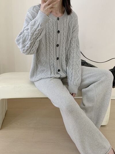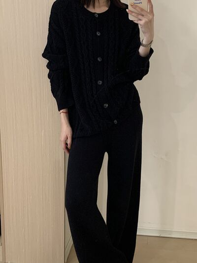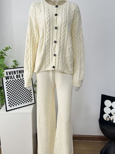 Cable Knit Cardigan & Wide Leg Pants Sweater Set