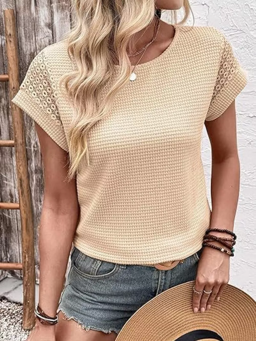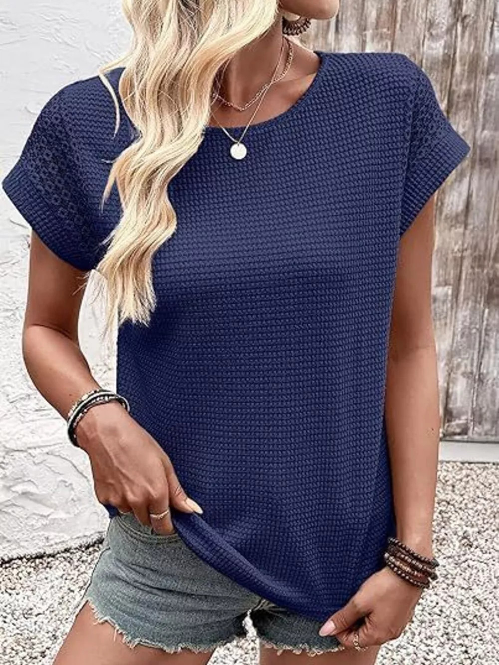 Waffle Knit Short Sleeve T-Shirt