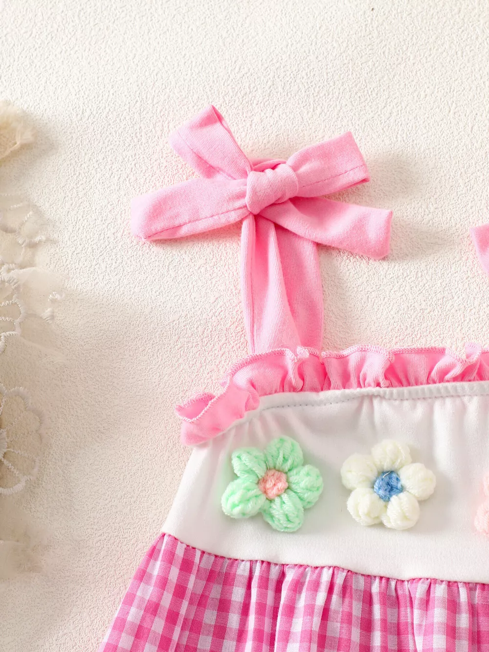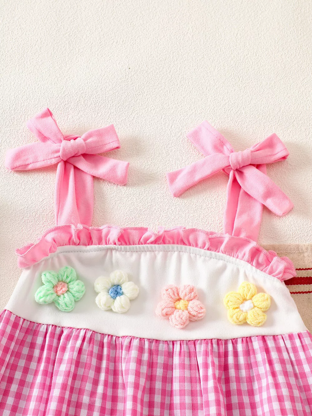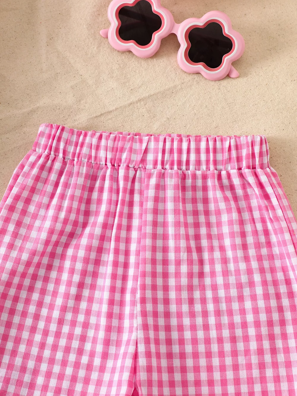 Children's Floral Applique Gingham Cami Top & Shorts Set
