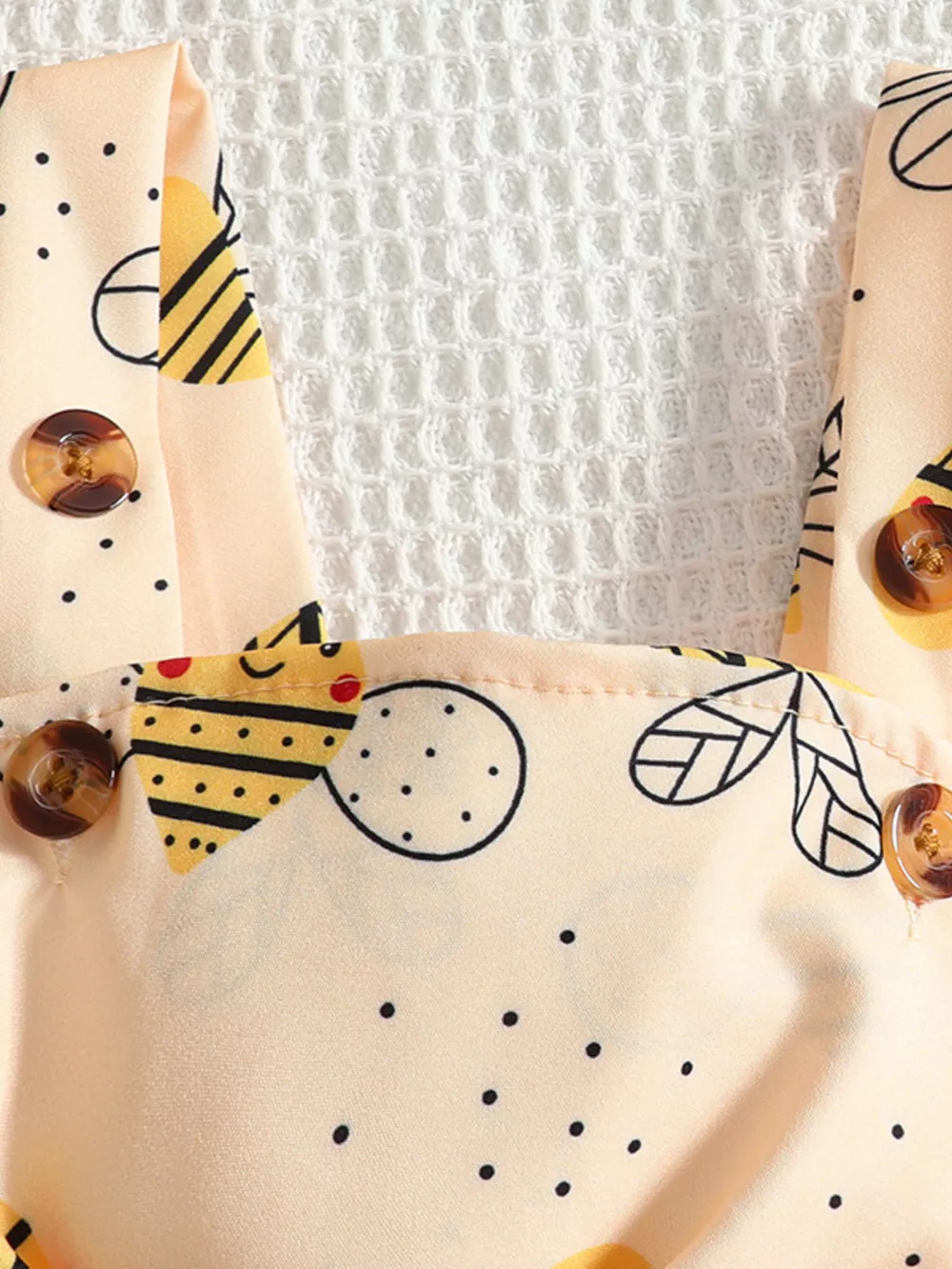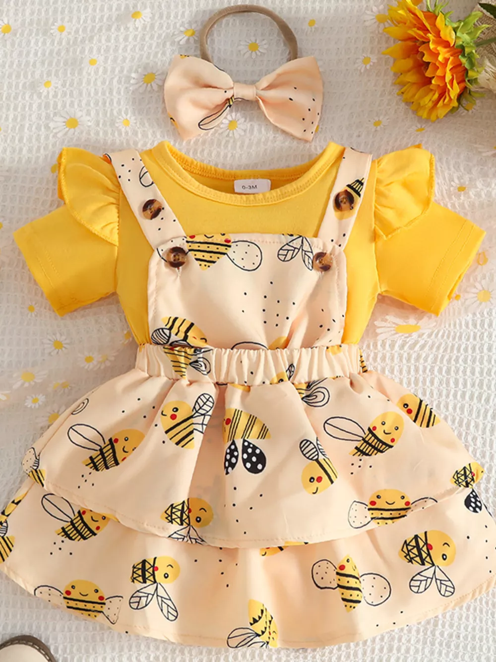 Children's Ruffle Trim Bodysuit and Bee Print Dress Set with Headband