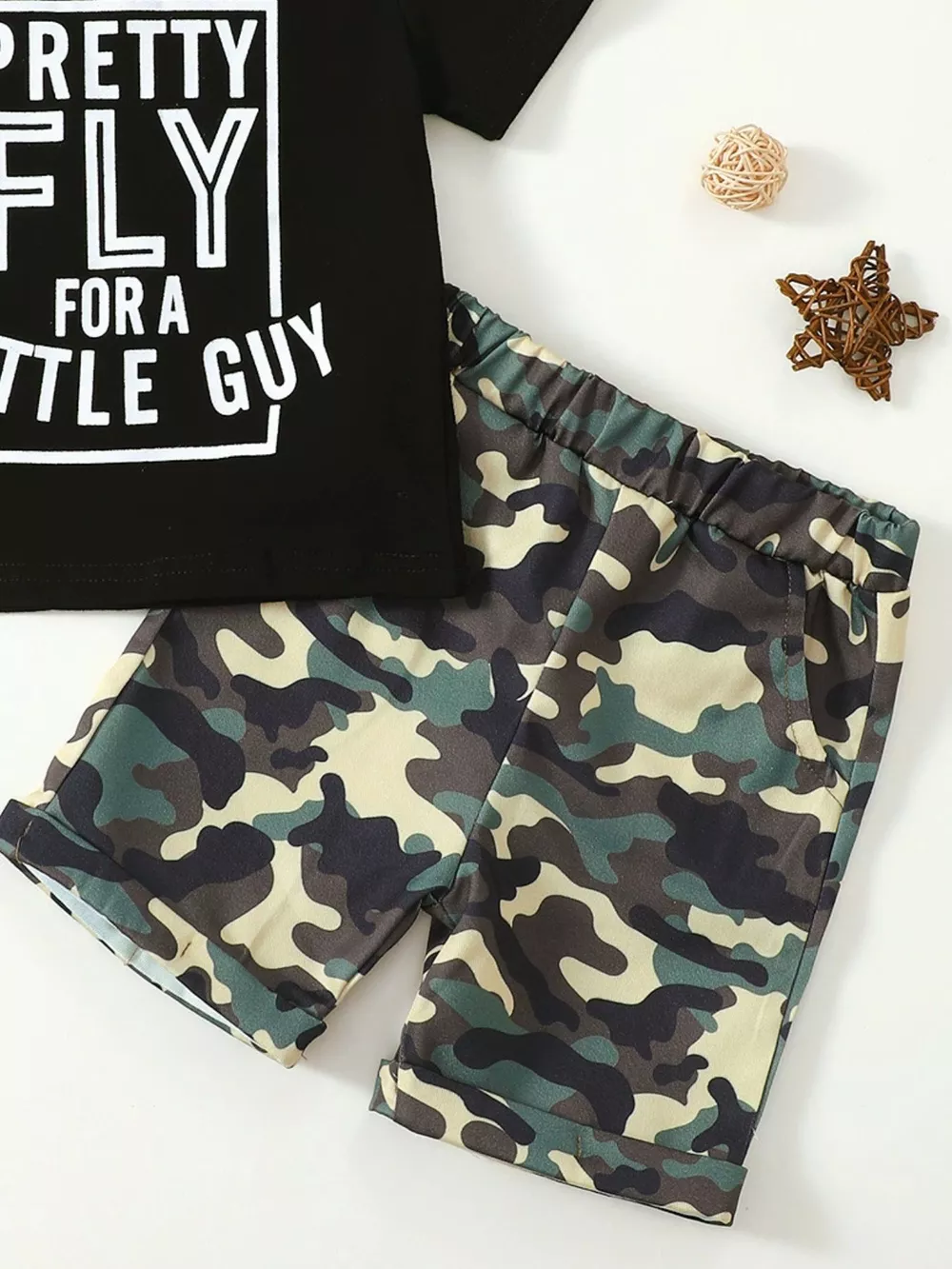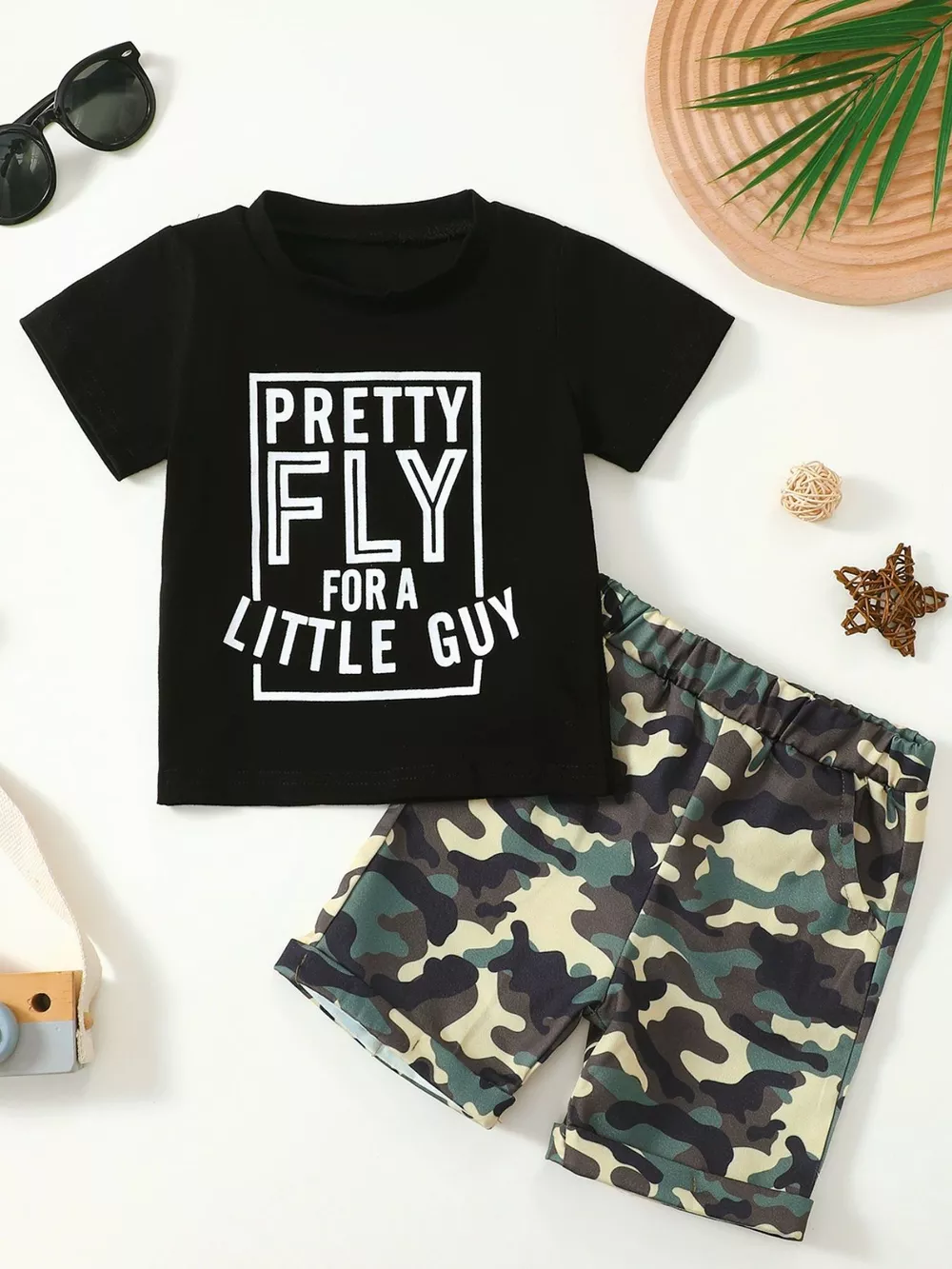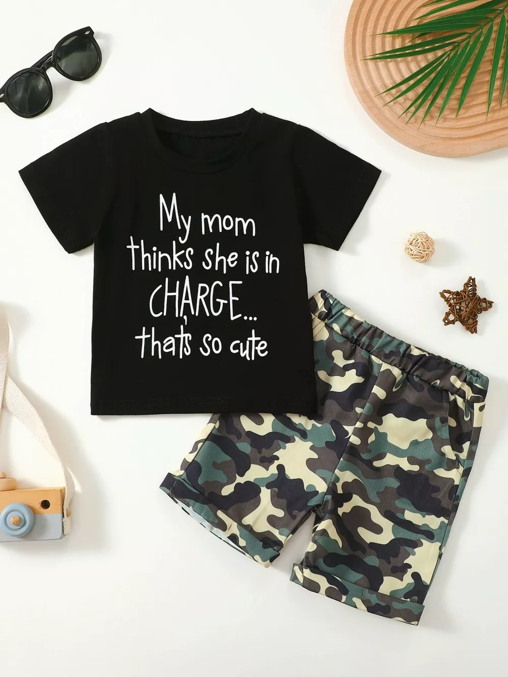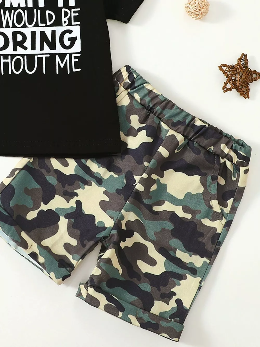 Children's Letter Graphic Tee and Camouflage Shorts Set