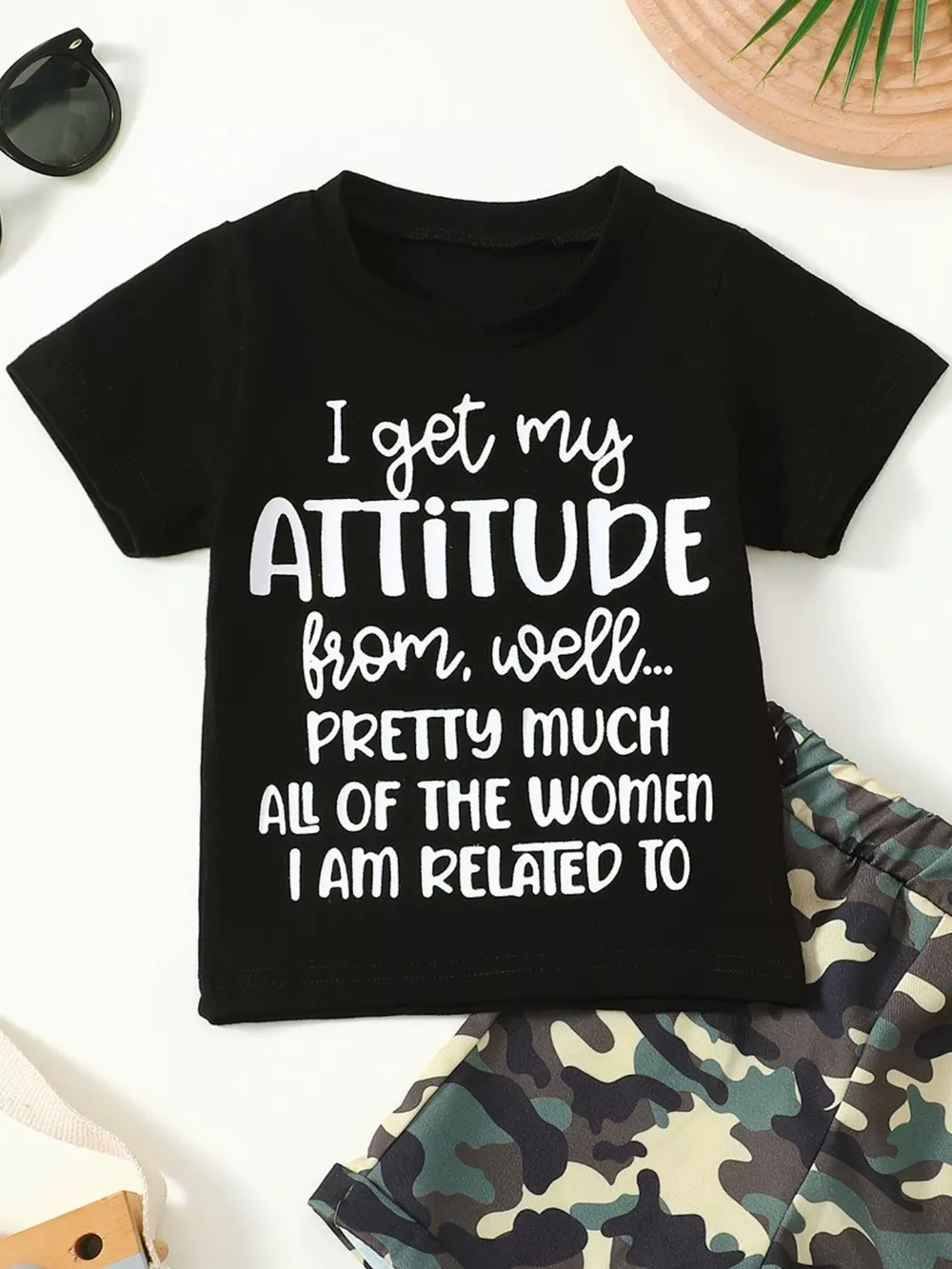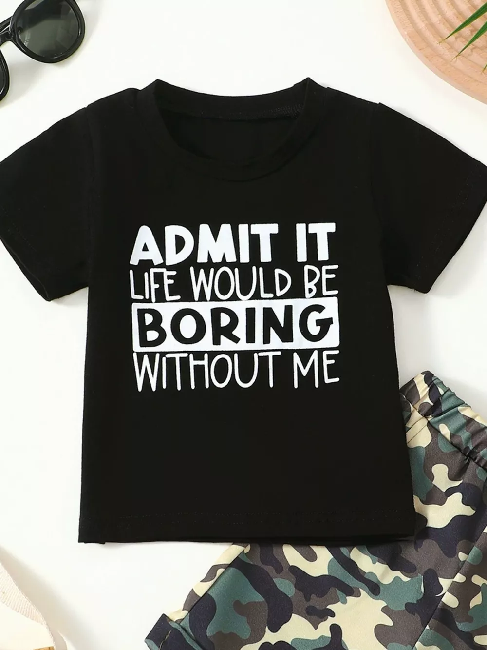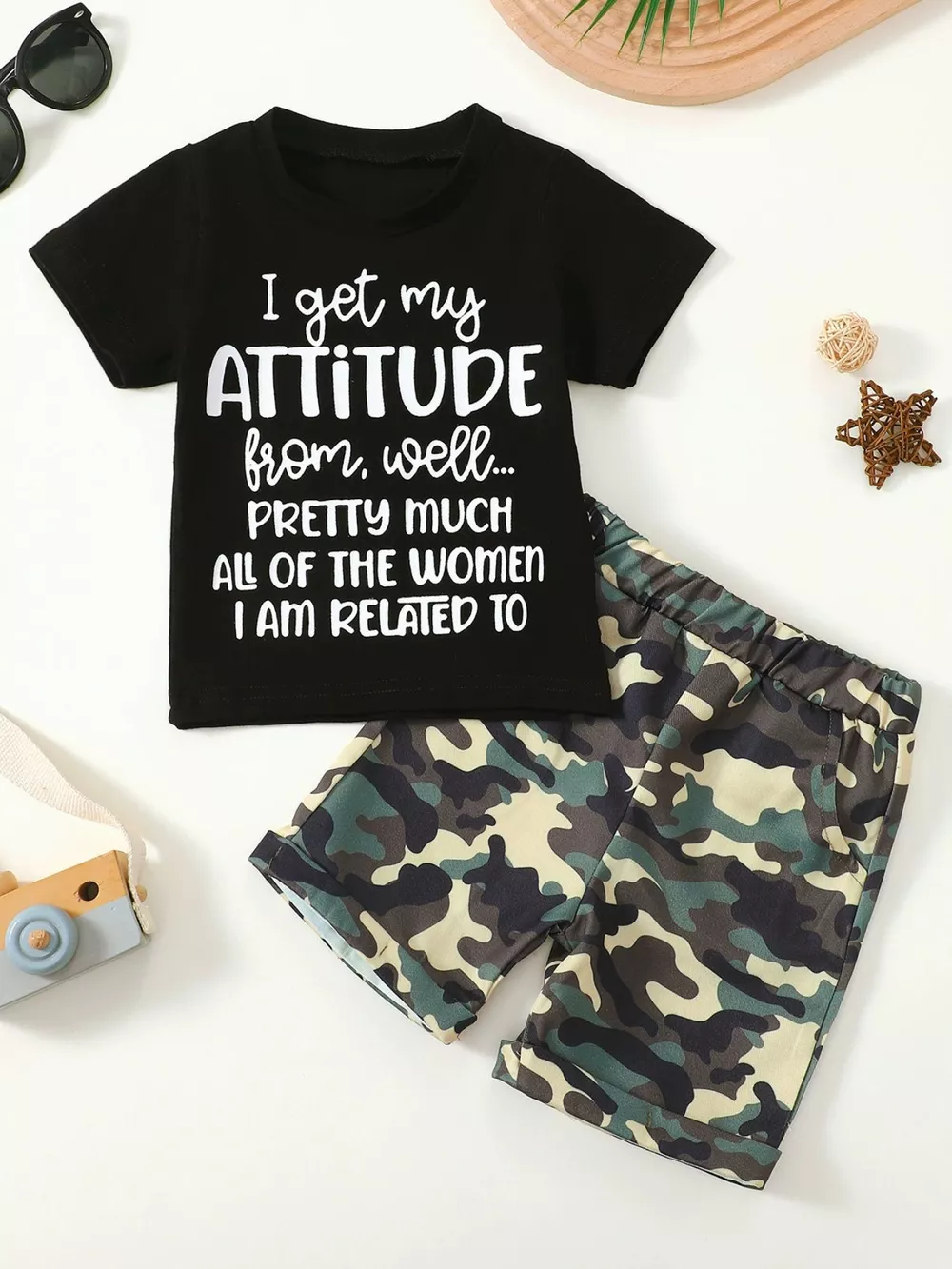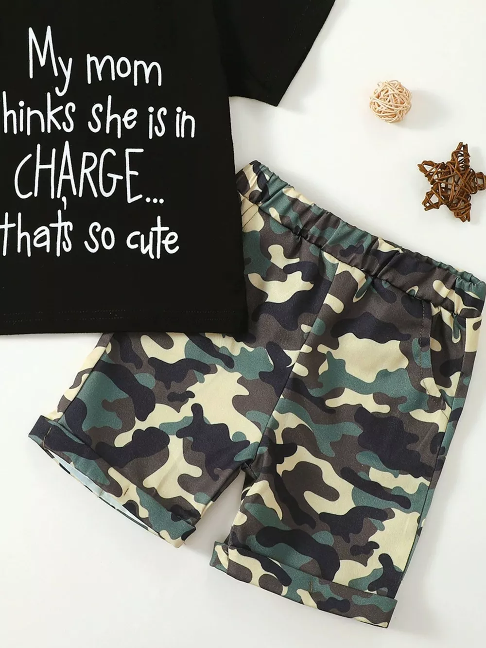 Children's Letter Graphic Tee and Camouflage Shorts Set