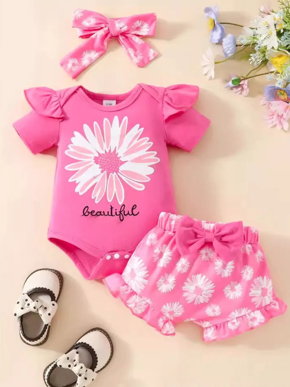 Children's Daisy Bodysuit and Shorts Set with Headband