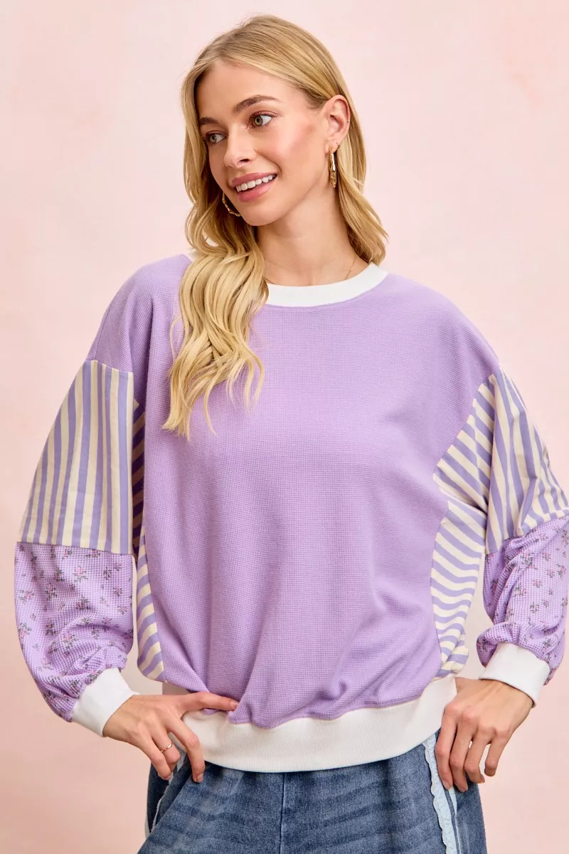 BiBi Mix and Match Sweatshirt with Floral Sleeve Striped