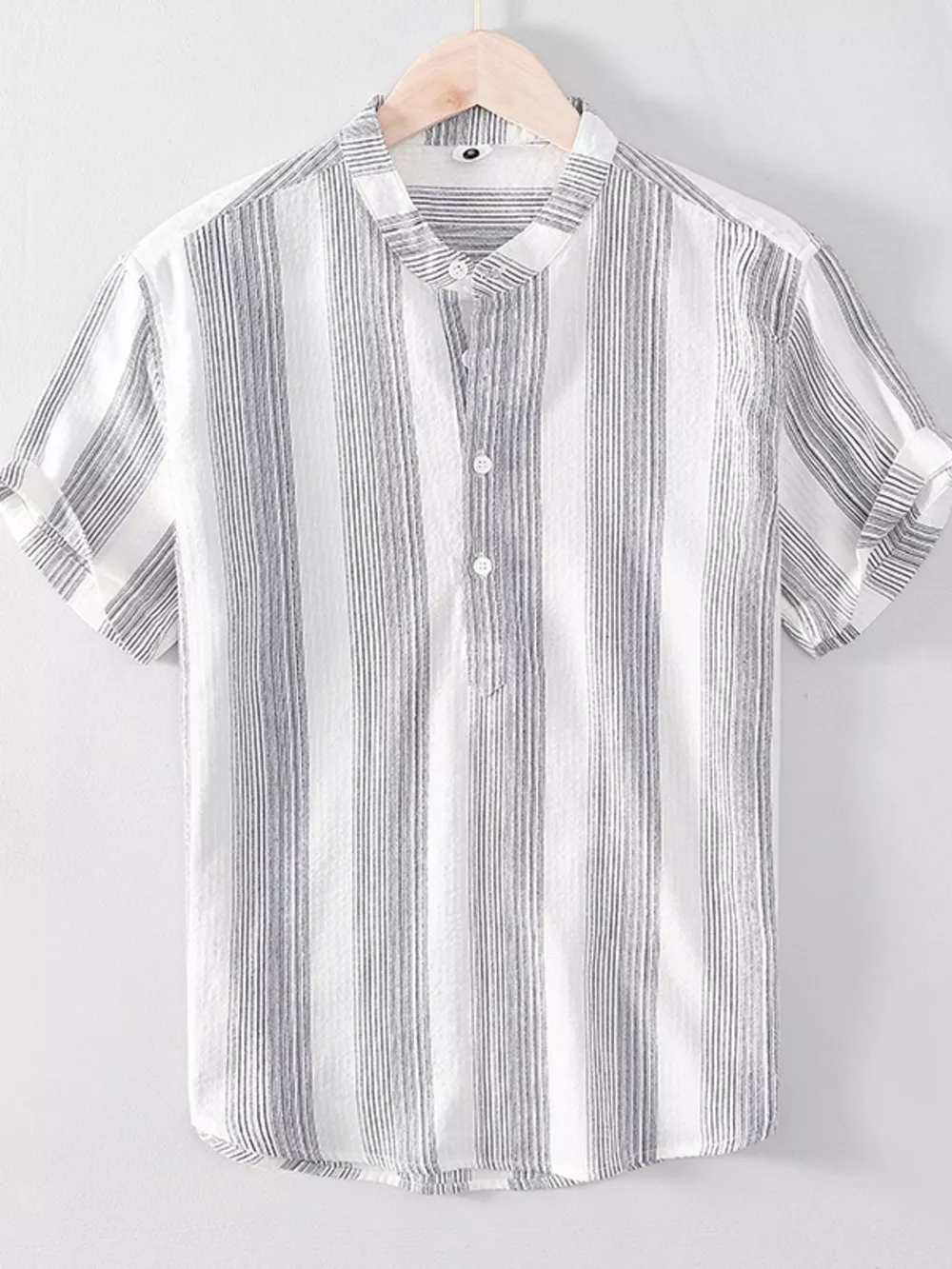 Men's Plus Size Striped Short Sleeve Blouse