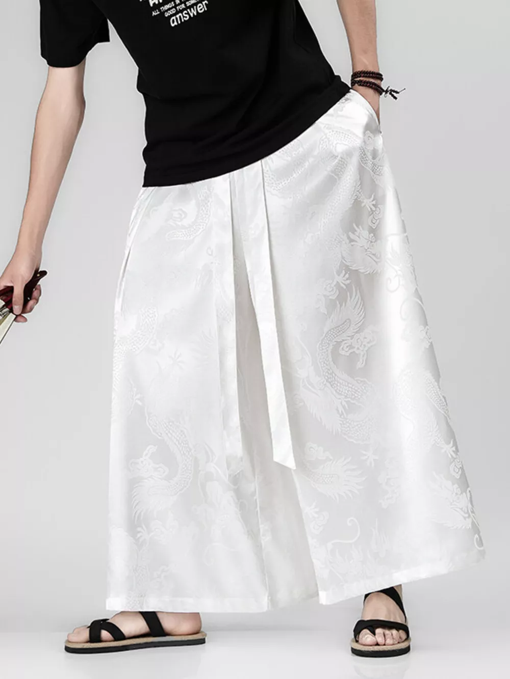 Men's Plus Size Dragon Pattern Wide Leg Pants