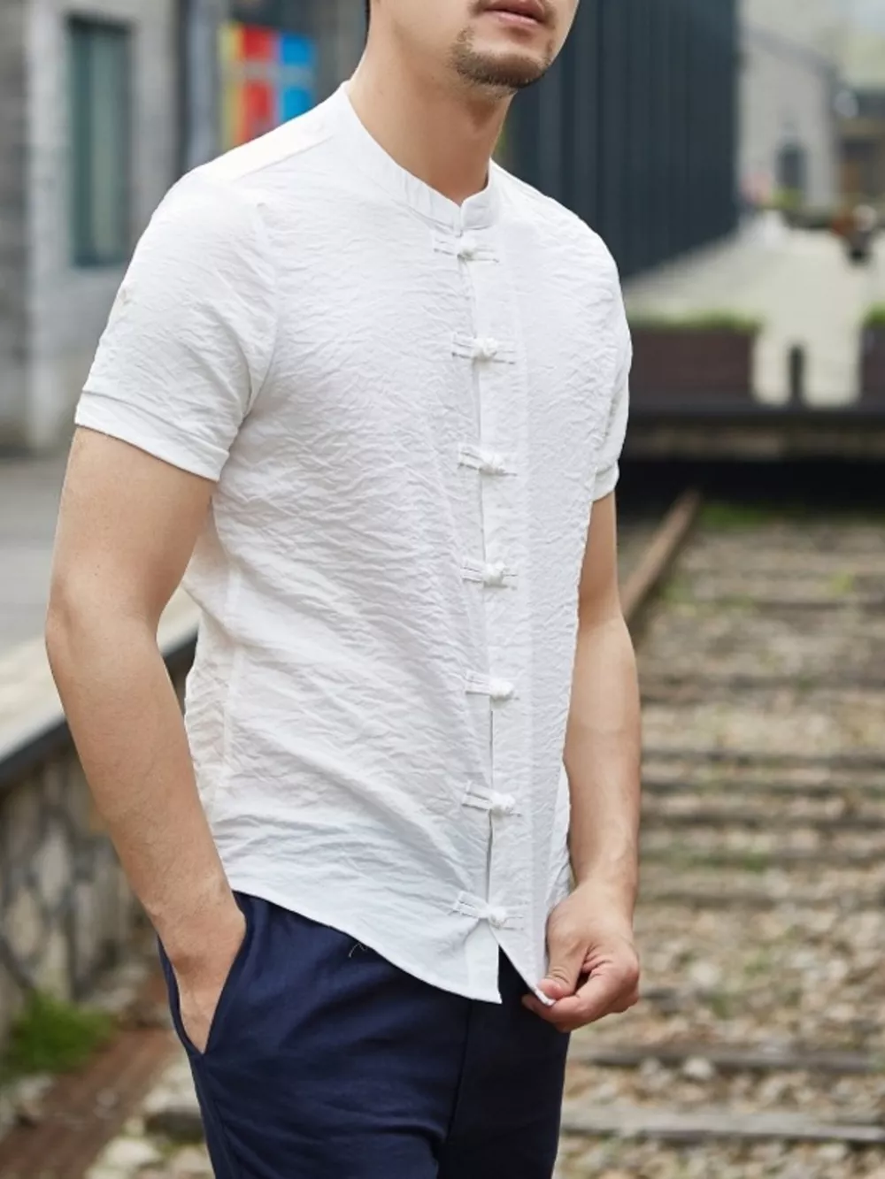 Men's Full Size Chinese Style Short Sleeve Shirt Plus Size